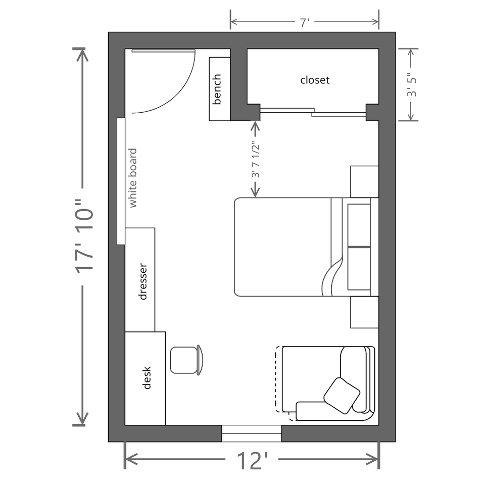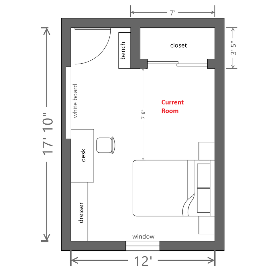 ただし、ベッドはおそらく右側の壁に設置する必要があります。アイデアをありがとう!