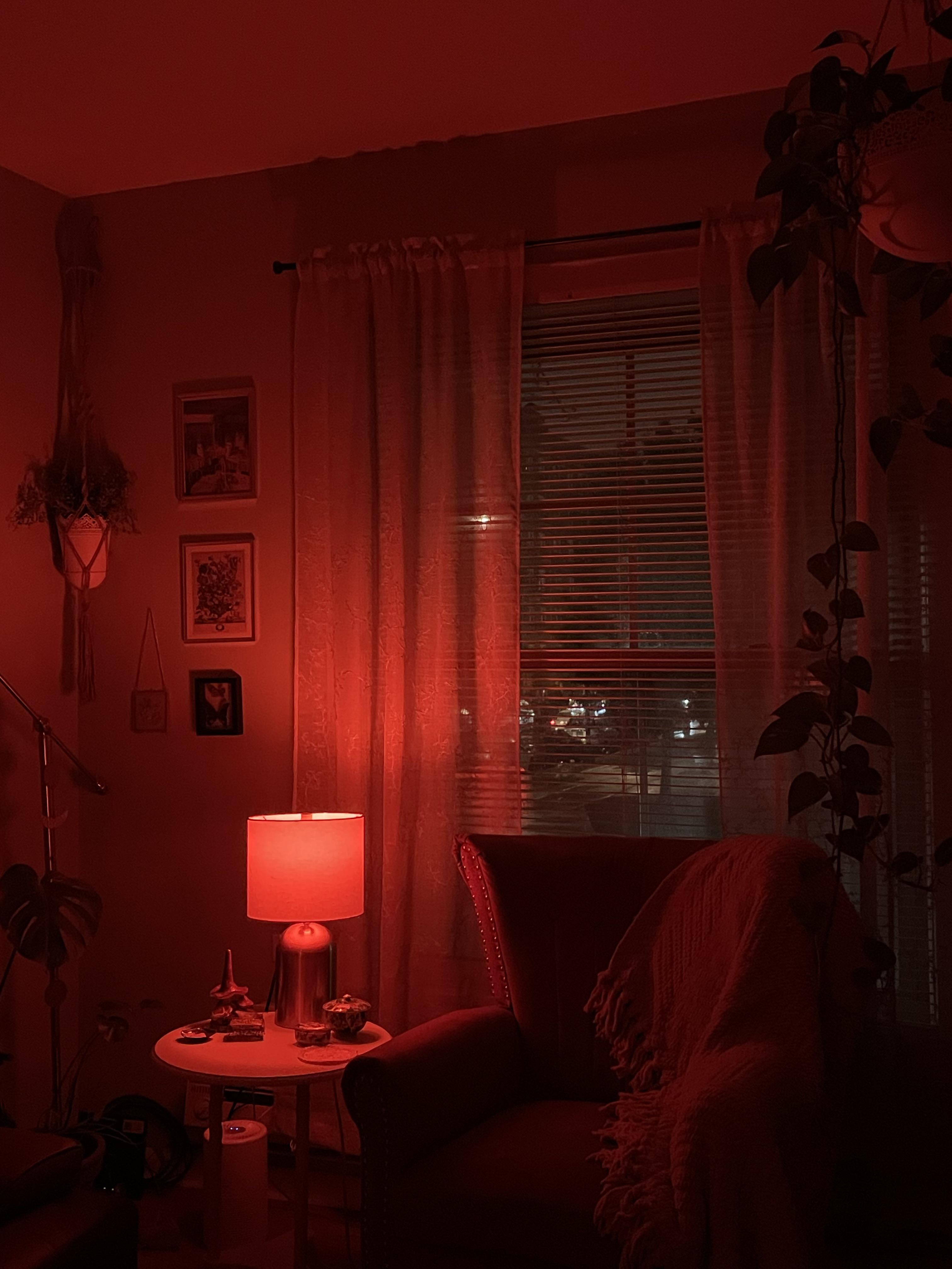 私のスタジオアパートメントの居心地の良いコーナー。外で雨が降っている間