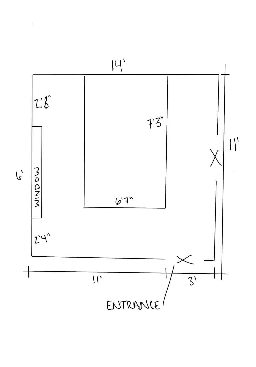 ラフなスケッチで申し訳ありません。現在の部屋のレイアウトが必ずしも気に入っているわけではありませんが、それを変える唯一の方法はベッドを窓の前に移動することのようです。