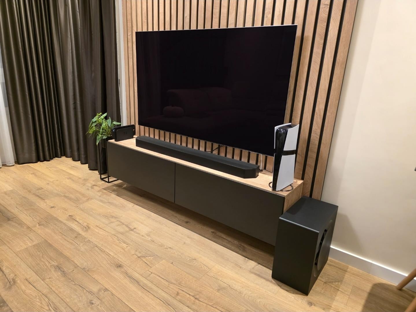しかし、私はテレビから約 320cm 離れたところに座っているので、77 型にアップグレードすることをますます考え始めています。"、これは下のテレビキャビネットとほぼ同じ幅になります。