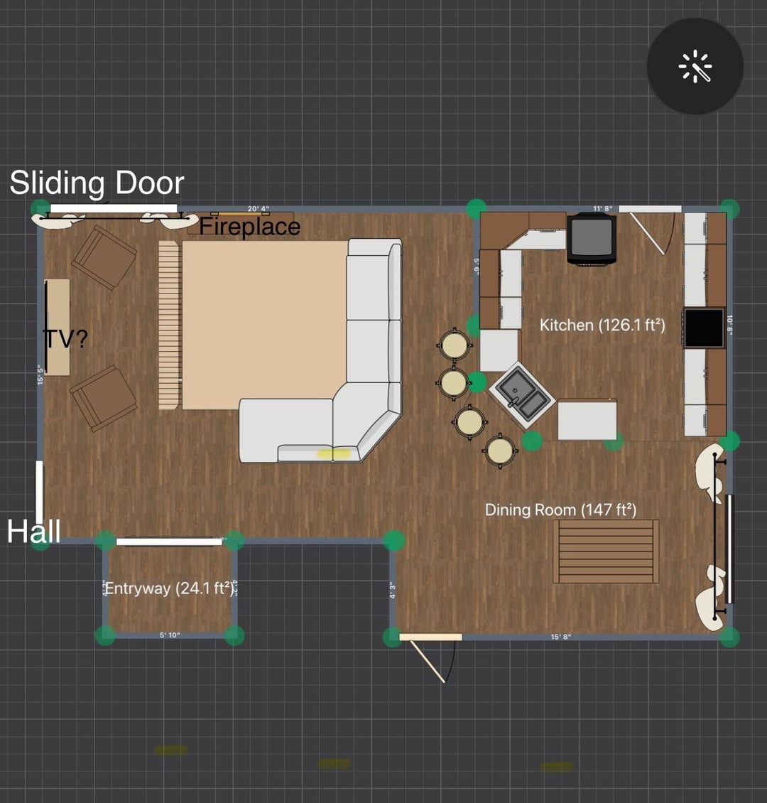 やあみんな!リビングルームに最適な家具の配置に悩んでいて、もう一度見直してみたかったのです。 これが私が考えた仮の家具レイアウトを含む間取りのラフスケッチです。部屋を最大限に活用できているかどうかわかりませんが、半島に面したソファの背もたれが部屋を閉めていると思いませんか?また、後ろの角には厄介な隙間があるでしょう 誰かが代替の家具の提案や、流れを改善する方法を持っているなら、それは本当に感謝します。 (これらの作品はまだ購入していません。)