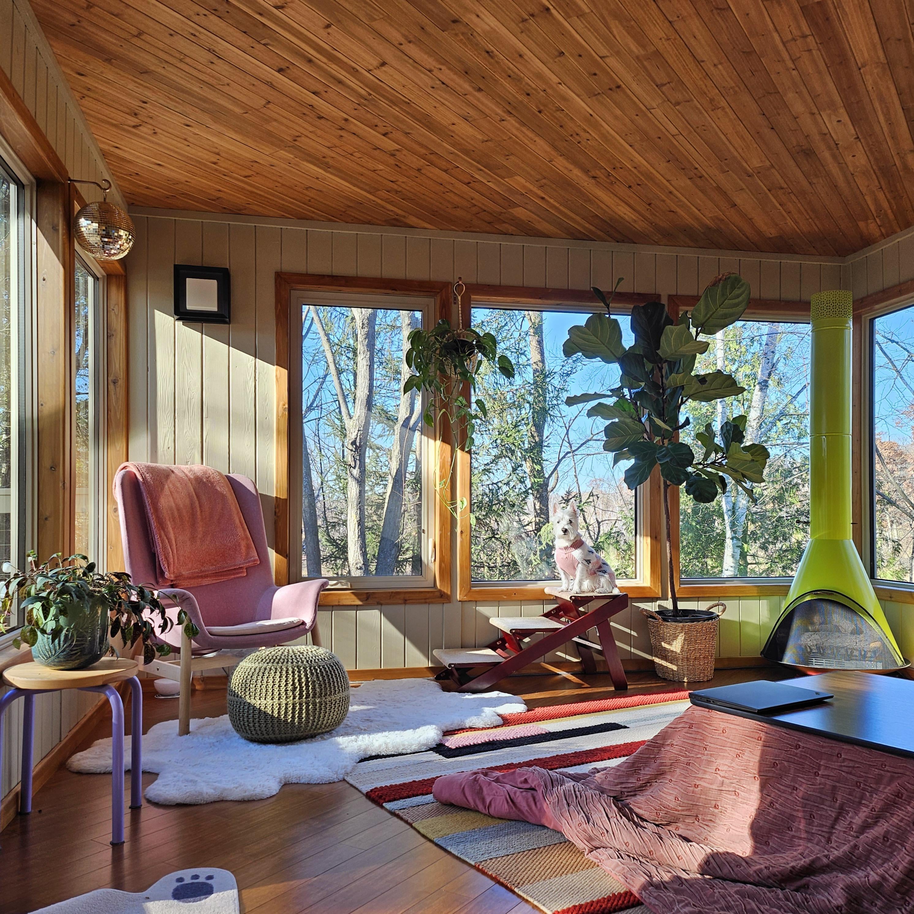 私の居心地の良い朝の場所は窓辺のベンチです