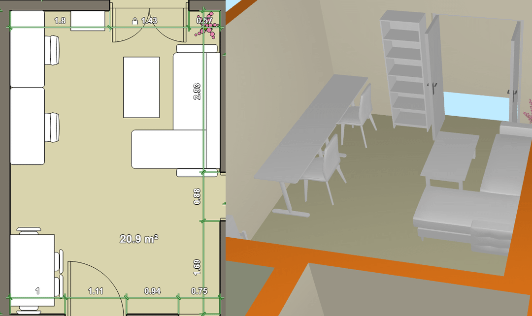 私たちはゲーマーなので、他にスペースがないため、リビングルームにデスクを 2 つ組み込む必要があります。別々のデスクを2台買うか、それとも2人用にL字型デスクを1台買うか迷っています。本棚は今のところオプションですが、しばらくしてから決定する必要があります。 玄関ドア横にも収納を設置します。 机とダイニングテーブルの間にクリスマスツリーを置くための空きスペースを残しました。 何を変えるべきだと思いますか?初めて計画している家なのでアドバイスが必要です:)