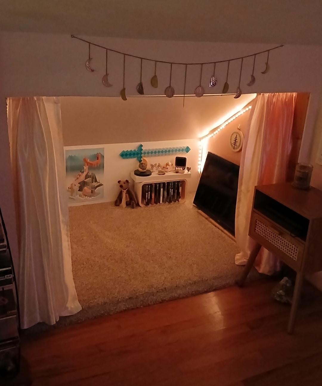 ブルース・ゴフが設計した神苑館の会話ピット。天井から吊るされたセロハン片とガチョウの羽が空気の循環に合わせて動き、光を屈折させます。 [1990×2048]