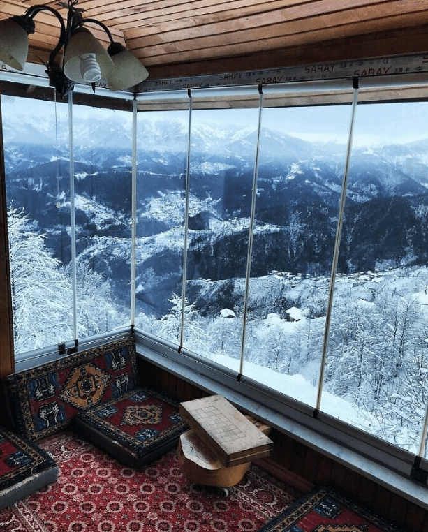 ブルース・ゴフが設計した神苑館の会話ピット。天井から吊るされたセロハン片とガチョウの羽が空気の循環に合わせて動き、光を屈折させます。 [1990×2048]