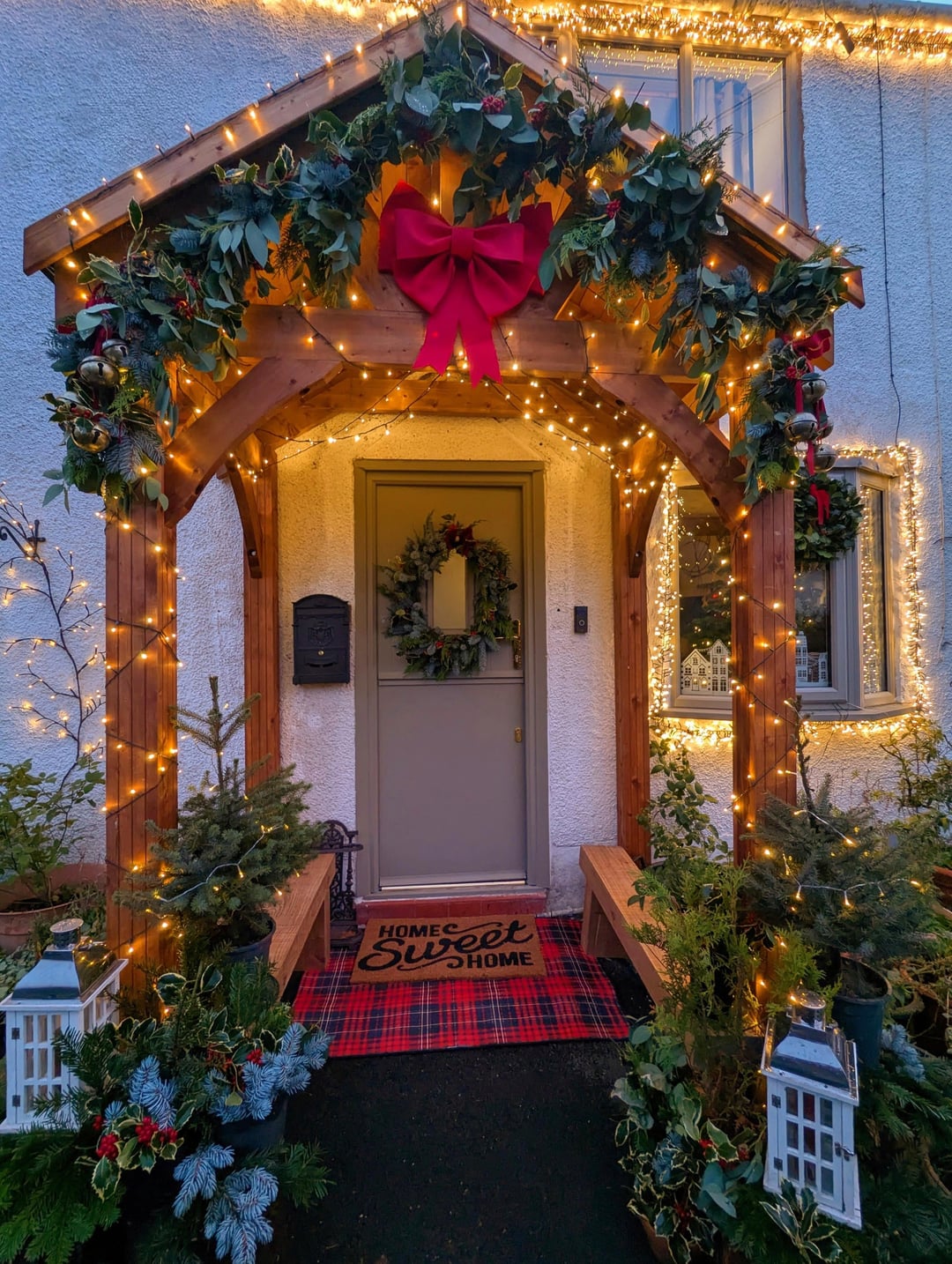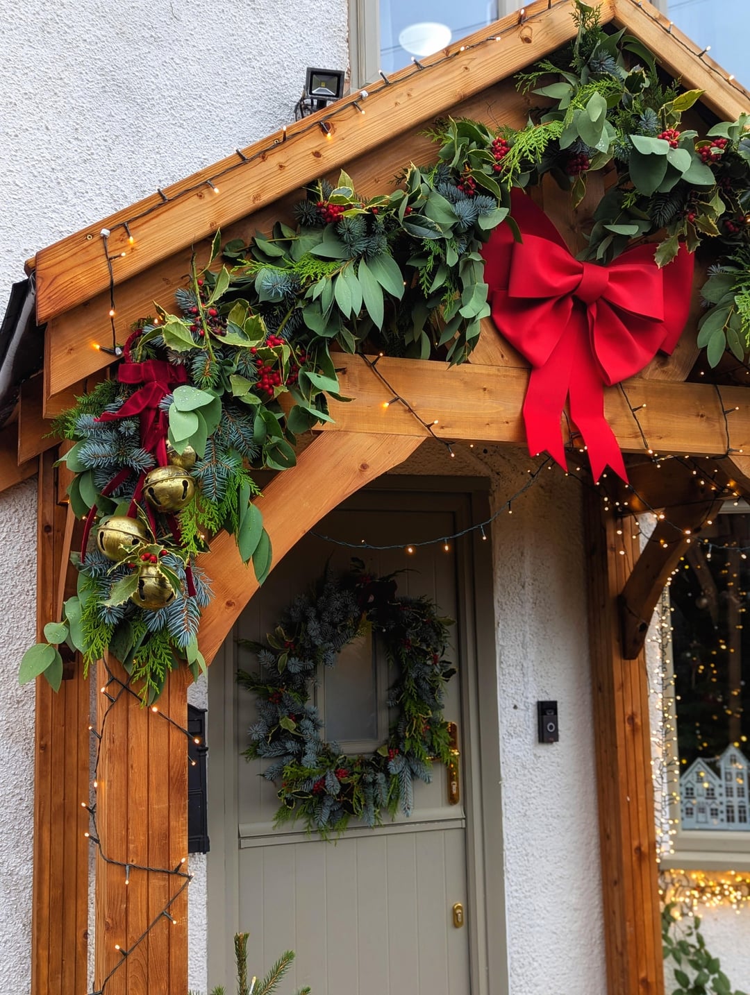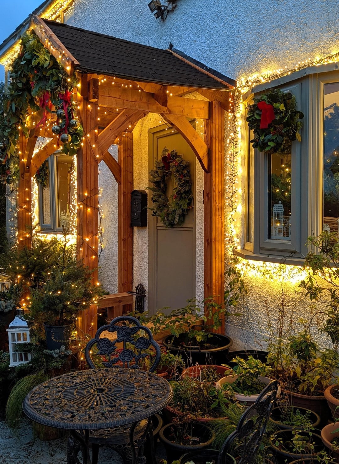 コテージのベランダが完成しました。ガーランドやアレンジメントを作るのがとても楽しかったです🎄
