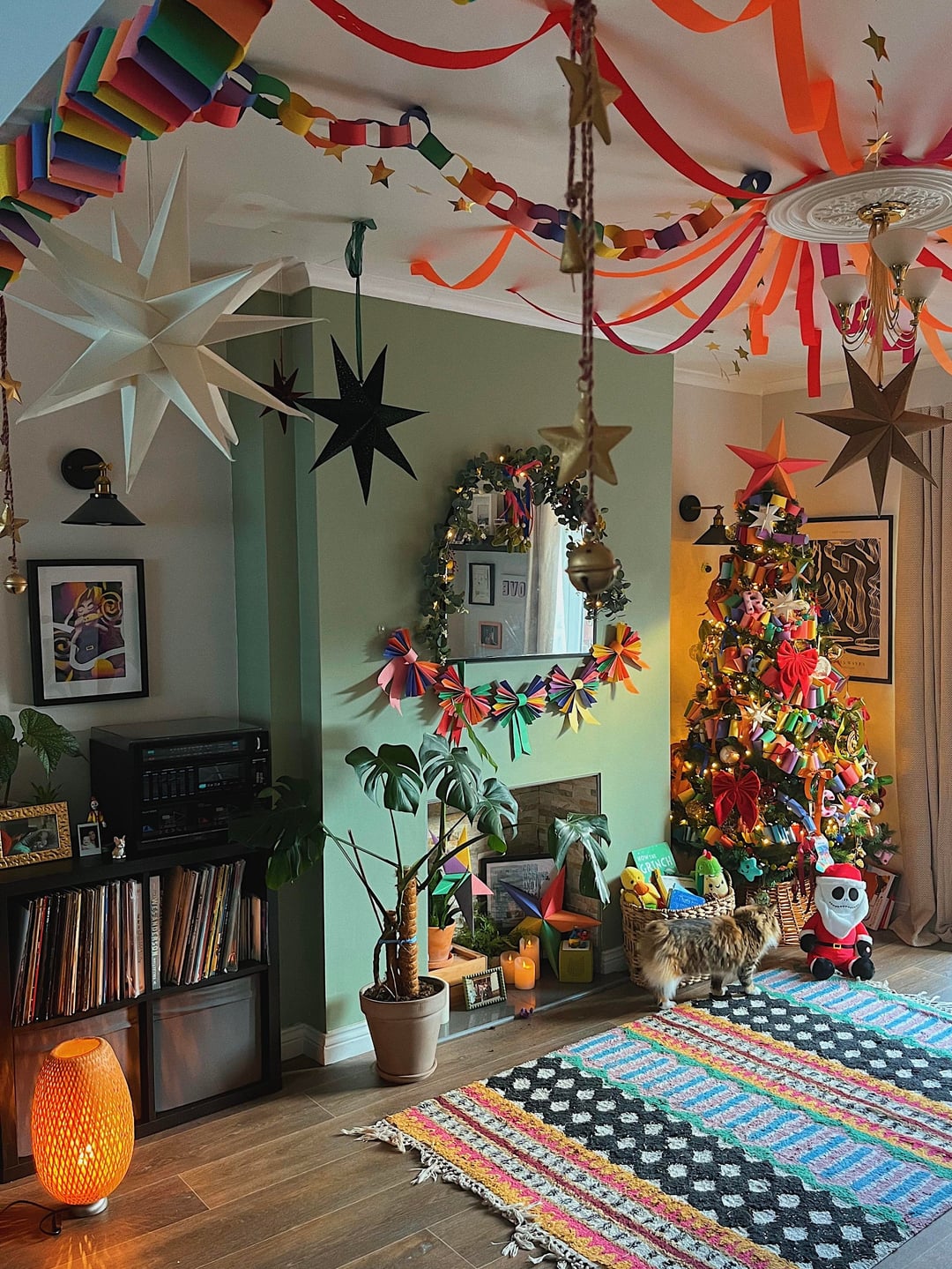 午後の日差しが差し込む陽気なリビングルーム 🌞 🎄