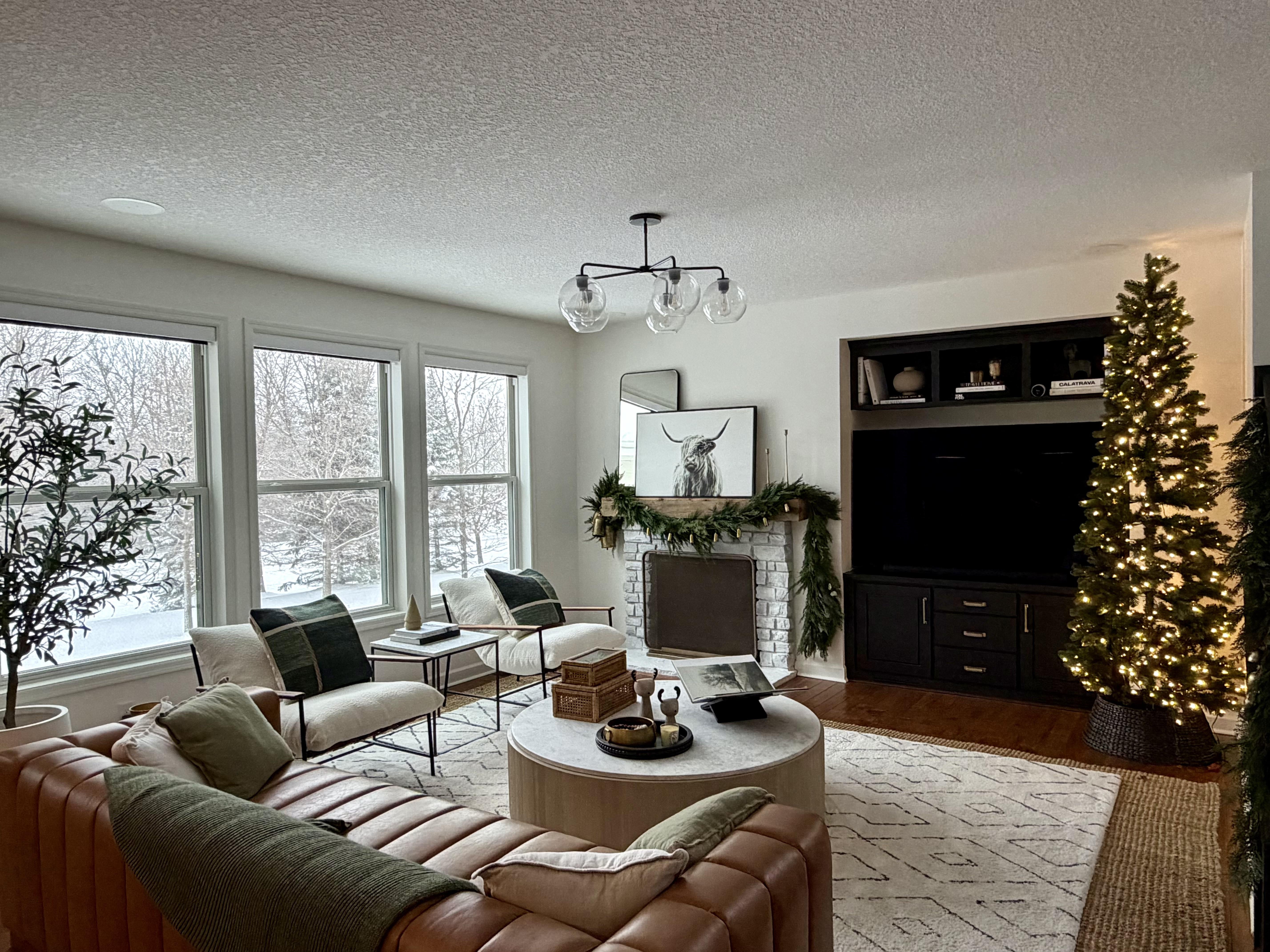 リビングルームでの雪の午後