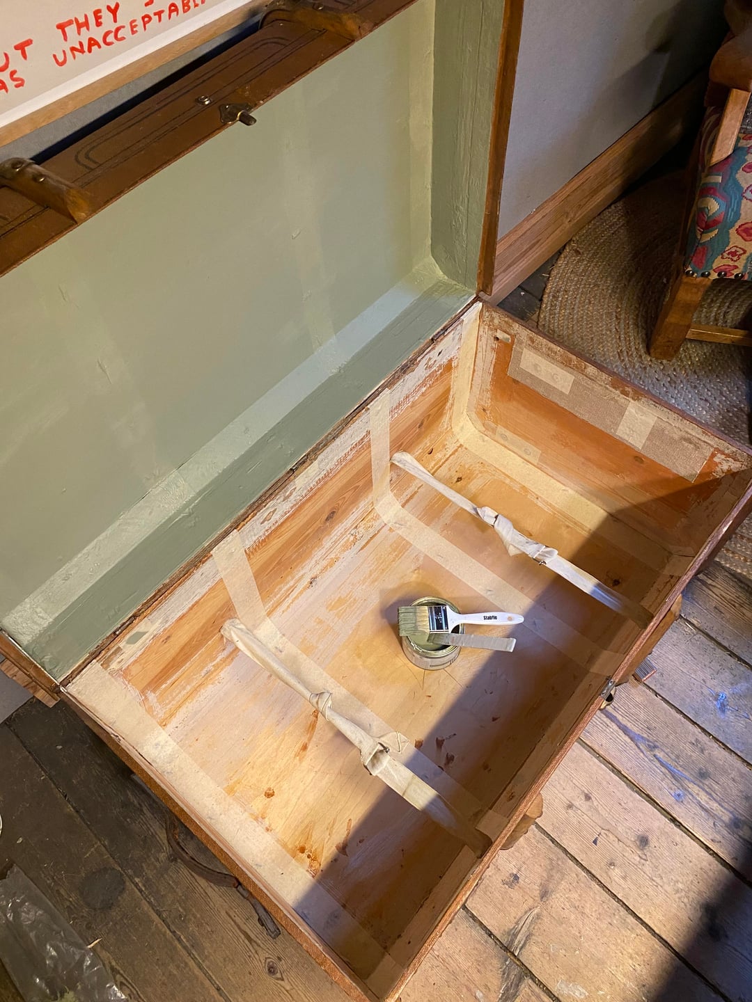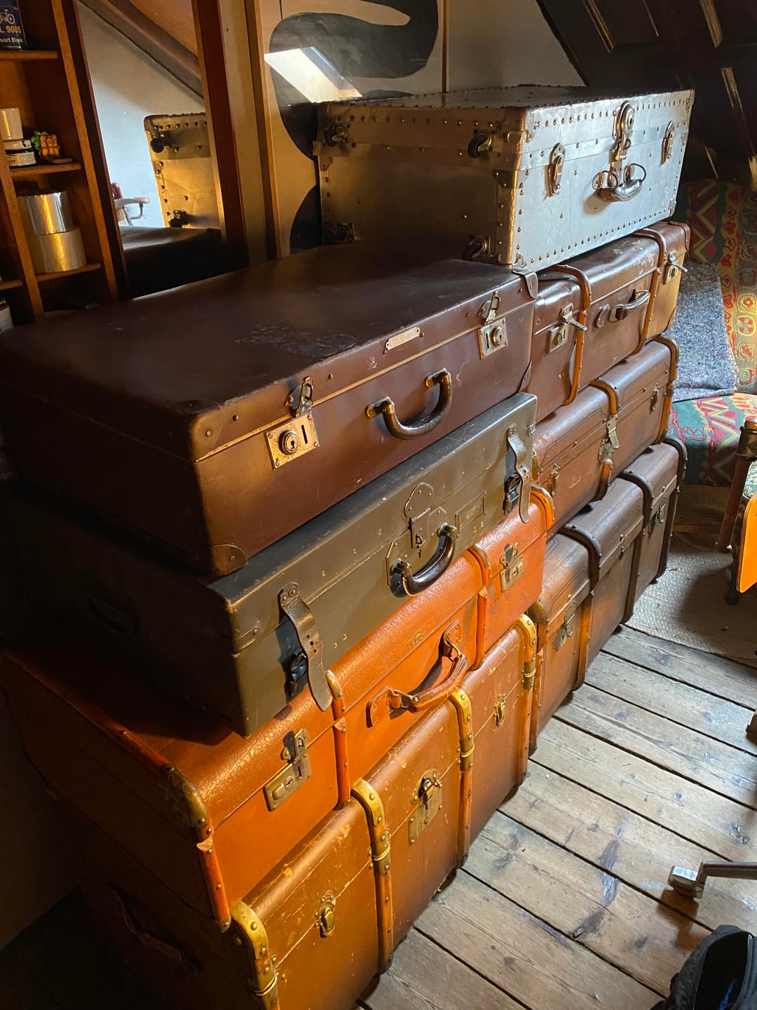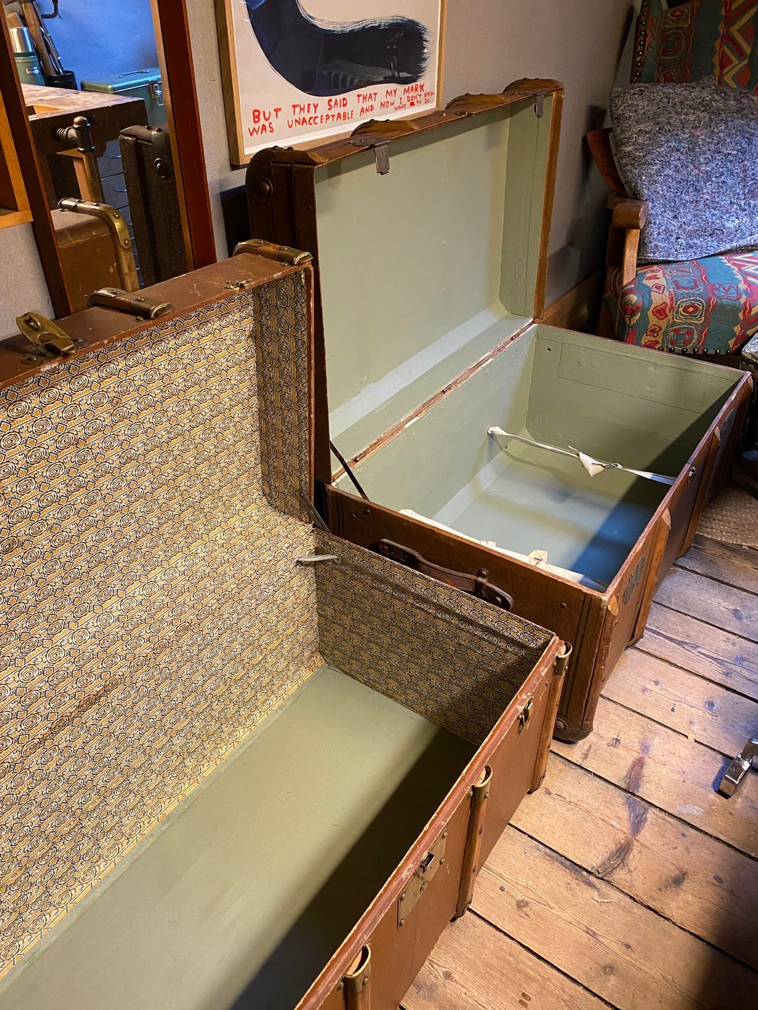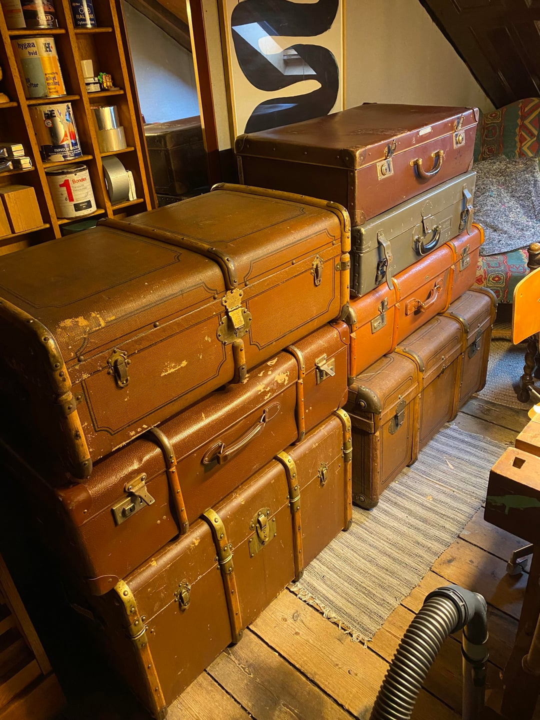 屋根裏部屋は居心地が良いでしょうか?プラスチック製の収納ボックスを古い汽船トランクと交換しました