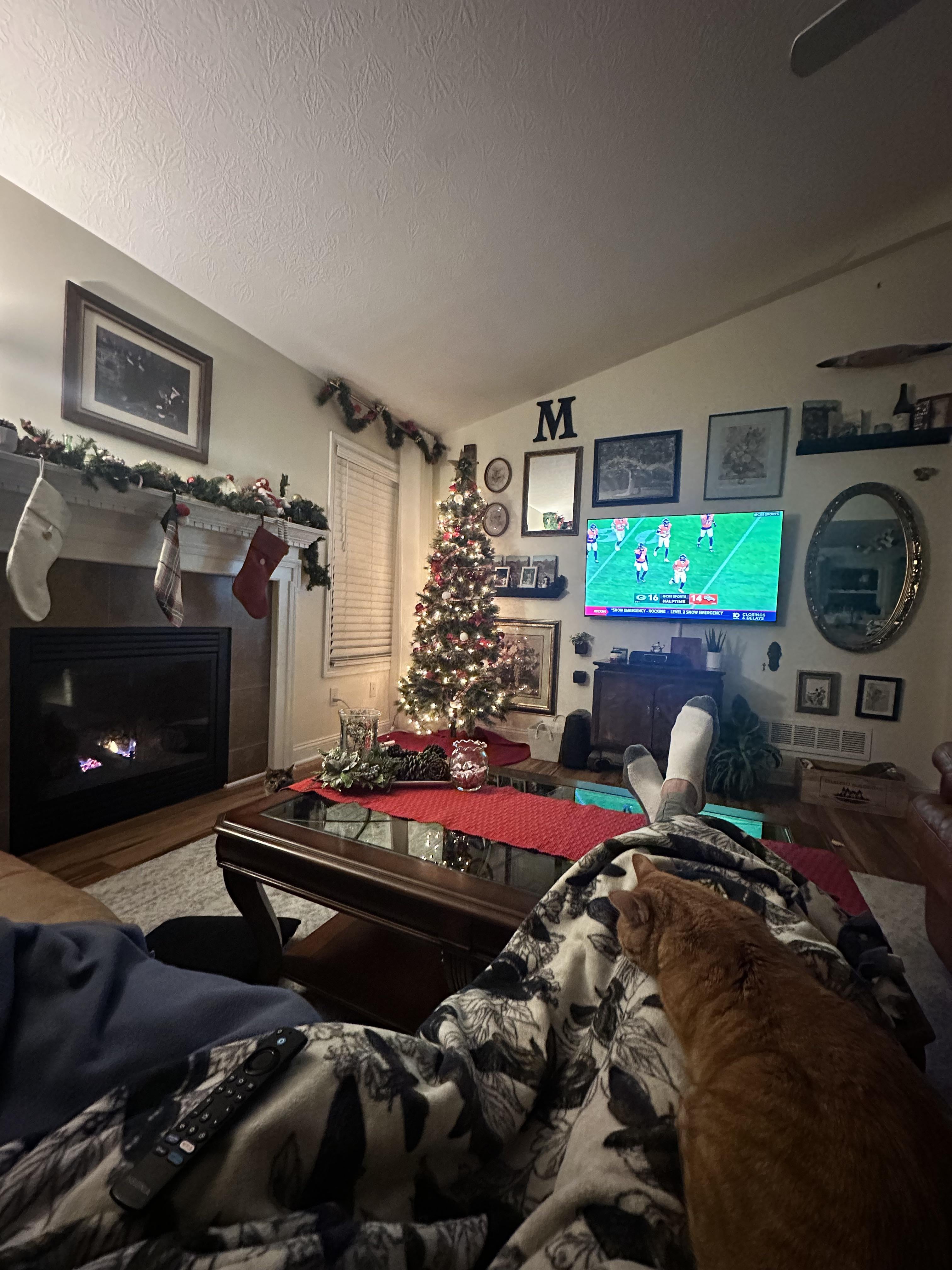 雪の降る日曜日は、テレビでサッカー、ストーブでジャンバラヤを楽しみながら、とても快適です。