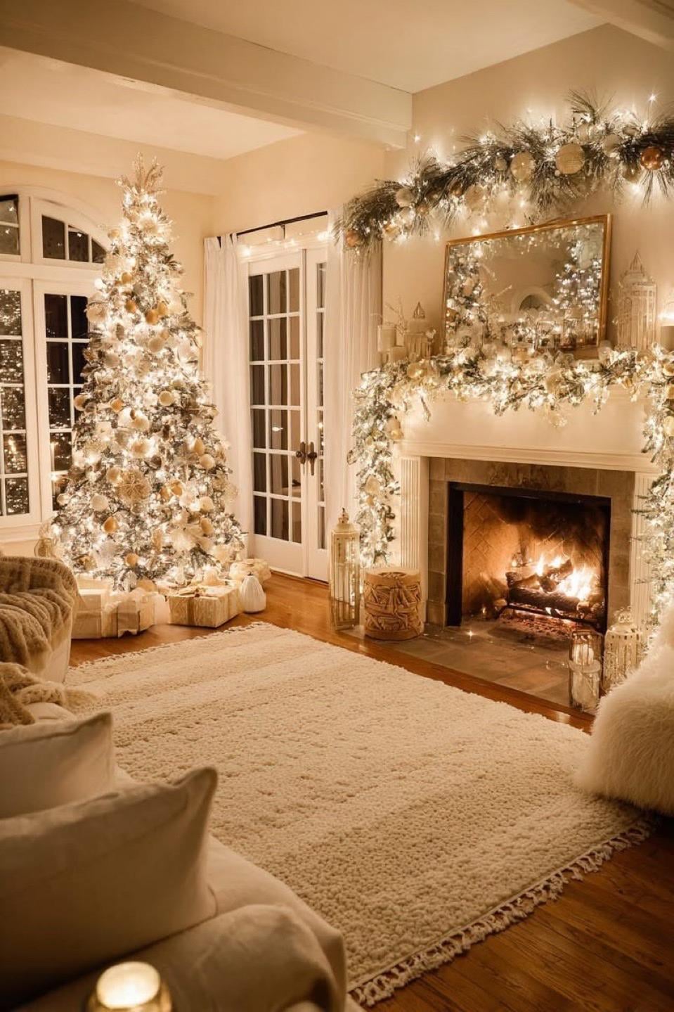 居心地の良いファミリールーム 暖炉とクリスマス装飾付