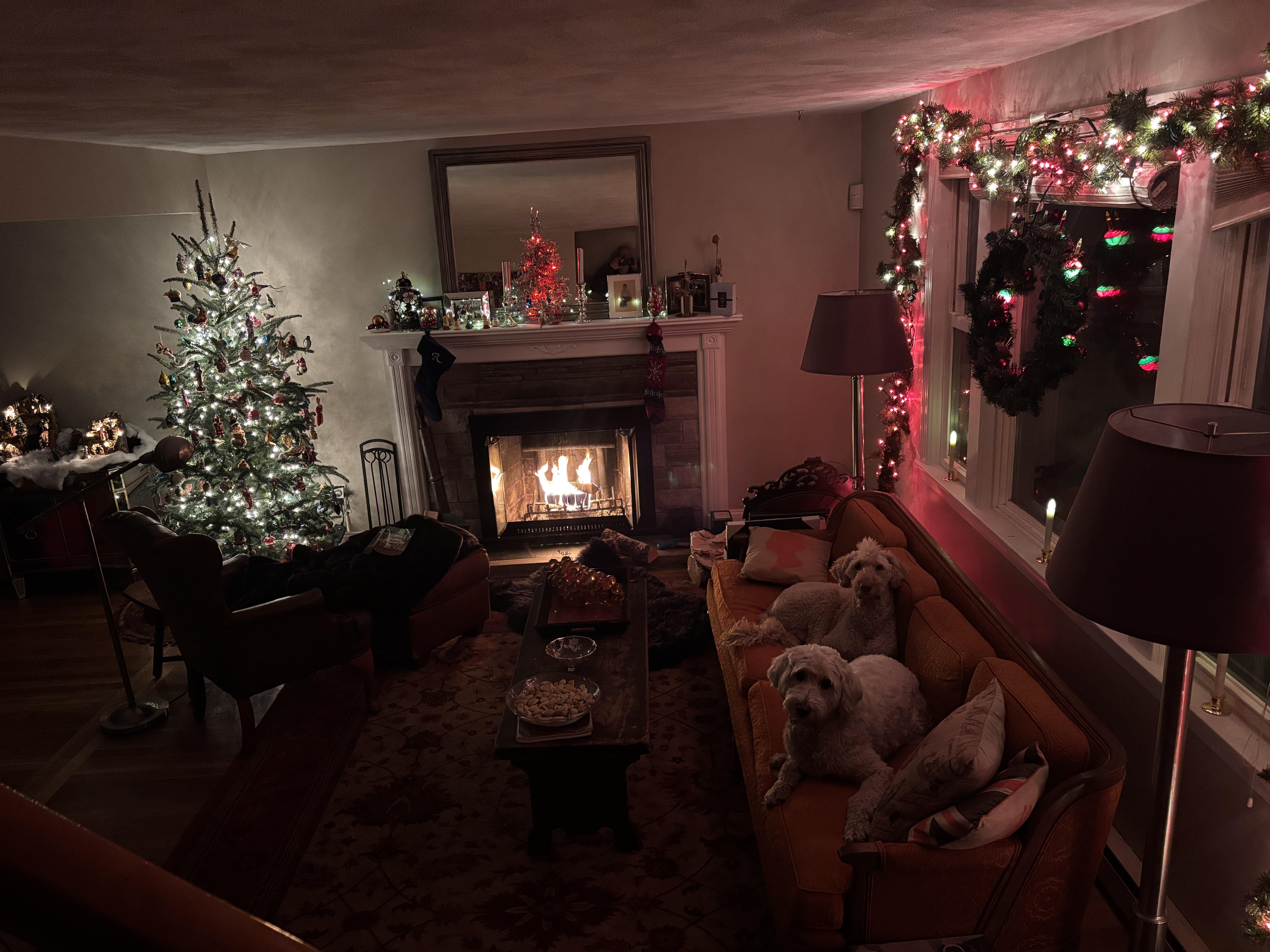 夫が亡くなってから初めての飾り付け。子犬も気に入っています