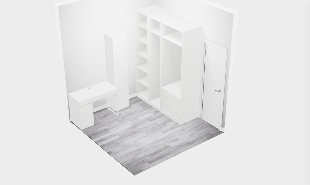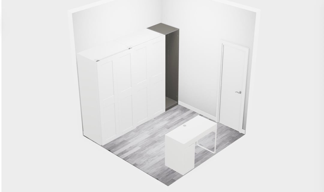 私の小さなホームオフィススペースに何らかの助けを期待しています。私たちのアパートではスペースが貴重なので、ワードローブをいくつか入れたいと思っています。