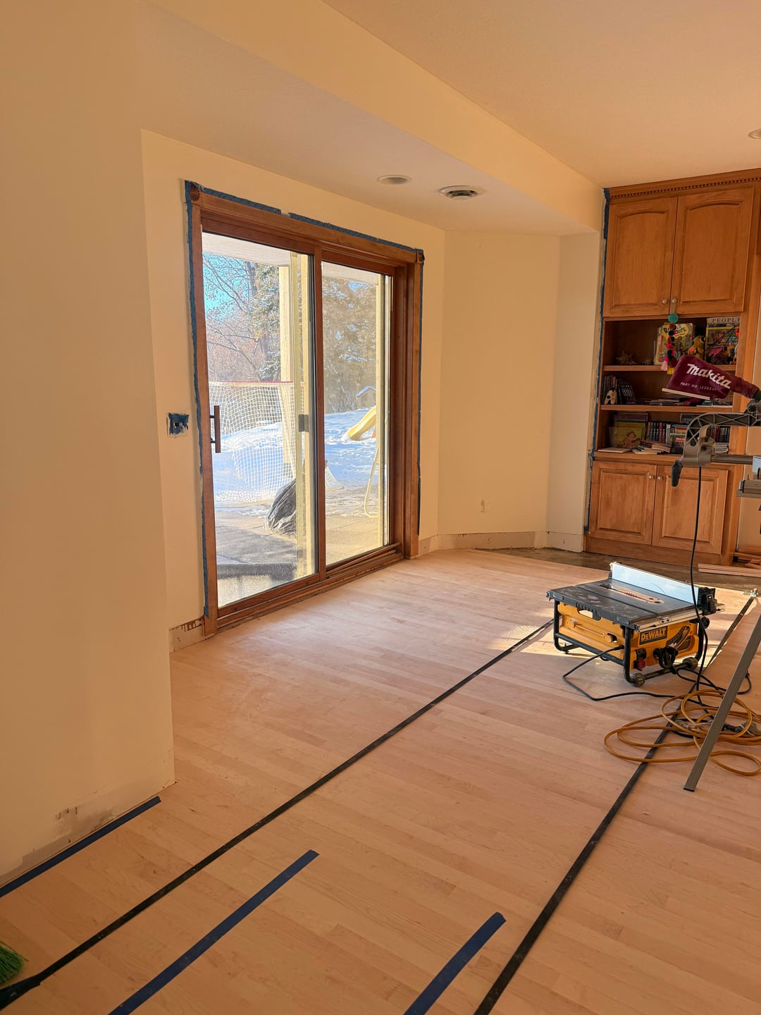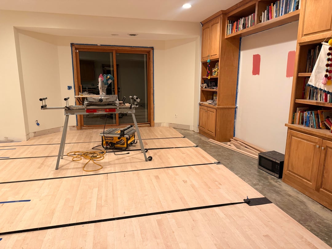2年前に引っ越してきて、ようやく床の塗り替えをしています。まずは地下室から始めて(子供が4人いて、ミネソタは冬です)、それからこの夏に、リビングルームにある非常に90年代のカーペット象嵌を取り除くことも含めて、メインフロアを工事する予定です。