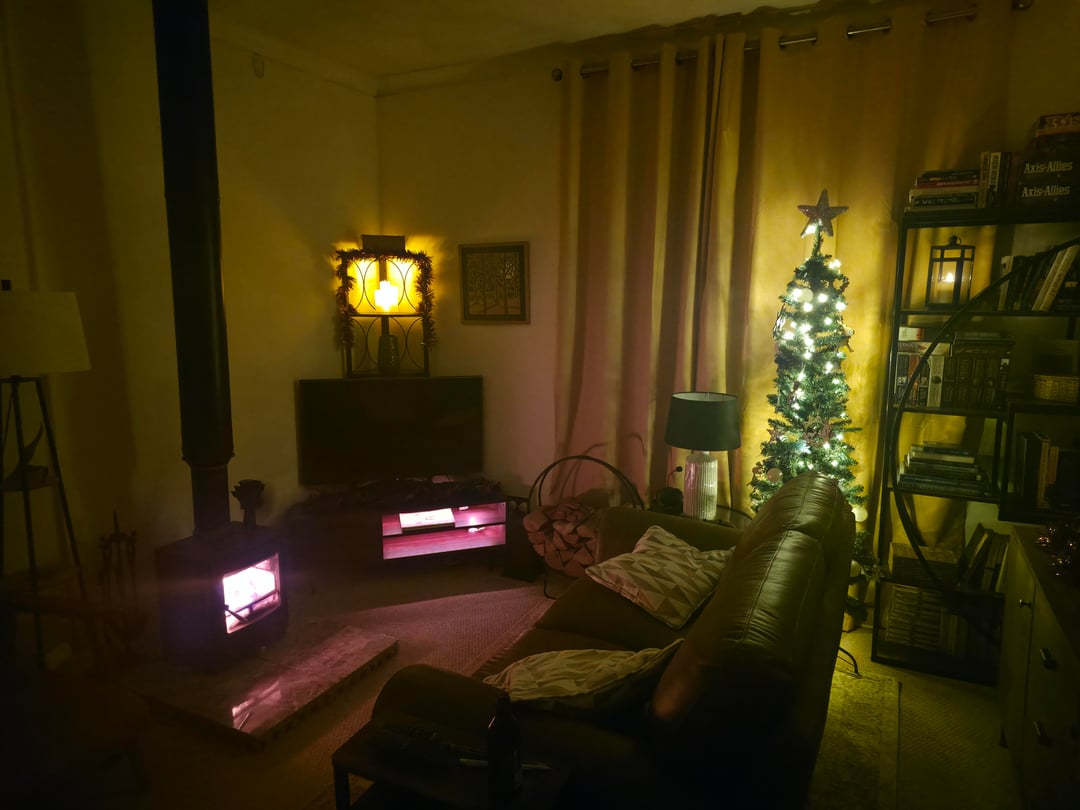新しいテレビを取り付け、フィリップス RBG フロア ランプを追加してさらに快適になりました