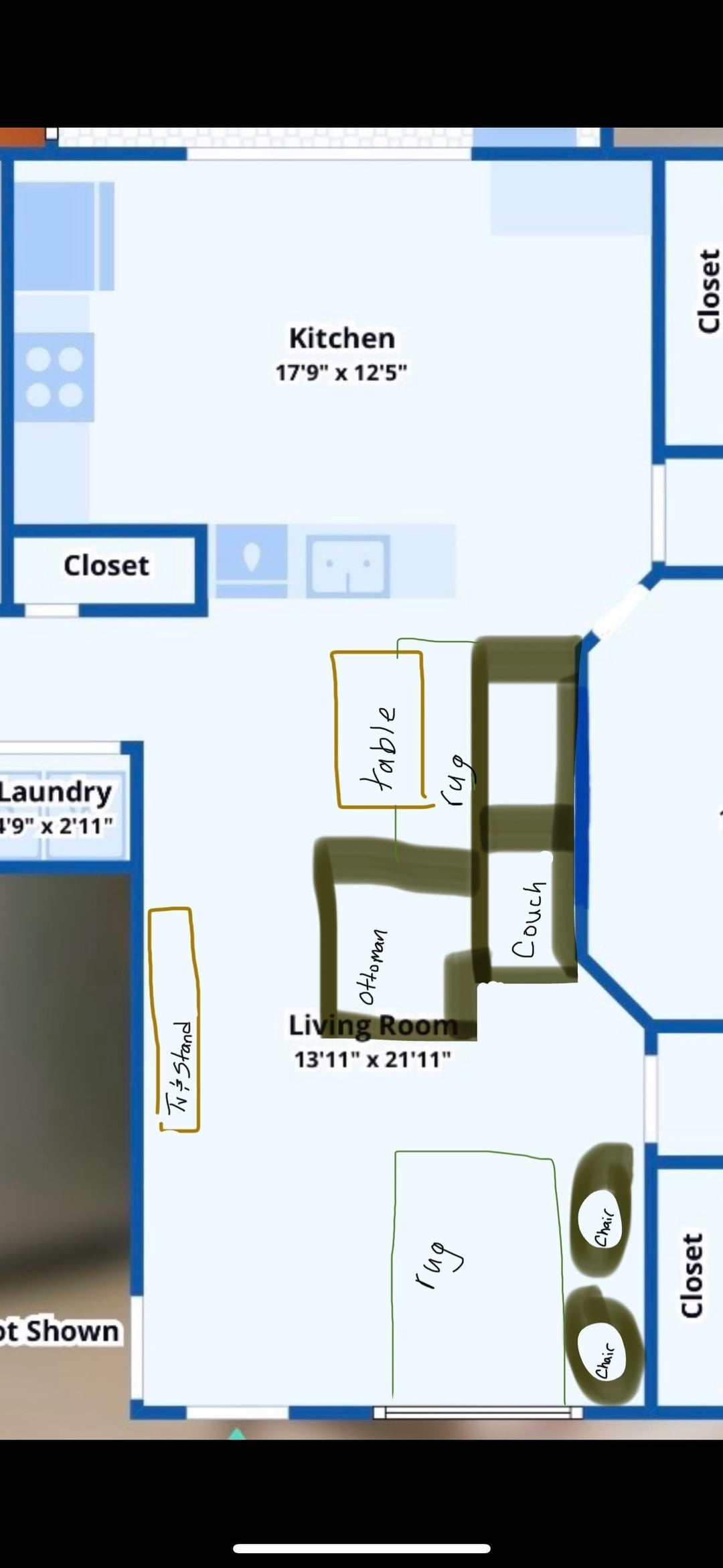 このひどいレイアウトは、リビングルームを半分にカットすること以外に実際に機能する唯一の方法があると感じています。このスペースを機能させるために再配置する方法についてアイデアを持っている人がいたら、大変感謝します。