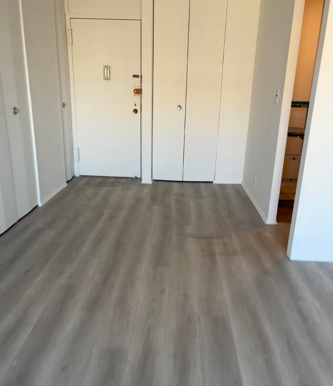 二つ折りのユーティリティクローゼットのドアの前にダイニングテーブルを置くのはいかがなものでしょうか?まだクローゼットを開けることができるはずです。クローゼットが1つしかないため、間取りは不正確です。奥行き88インチのソファを置いたので、リビングエリアに1人を置くスペースはあまりないと思います。