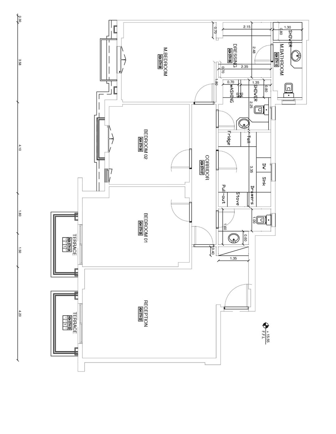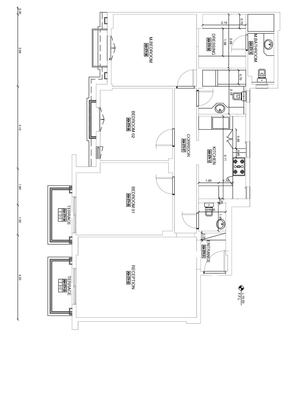 オプション 1: ゲスト用トイレなし オプション 2: 小さいゲスト用トイレ オプション 3: 大きいゲスト用トイレ