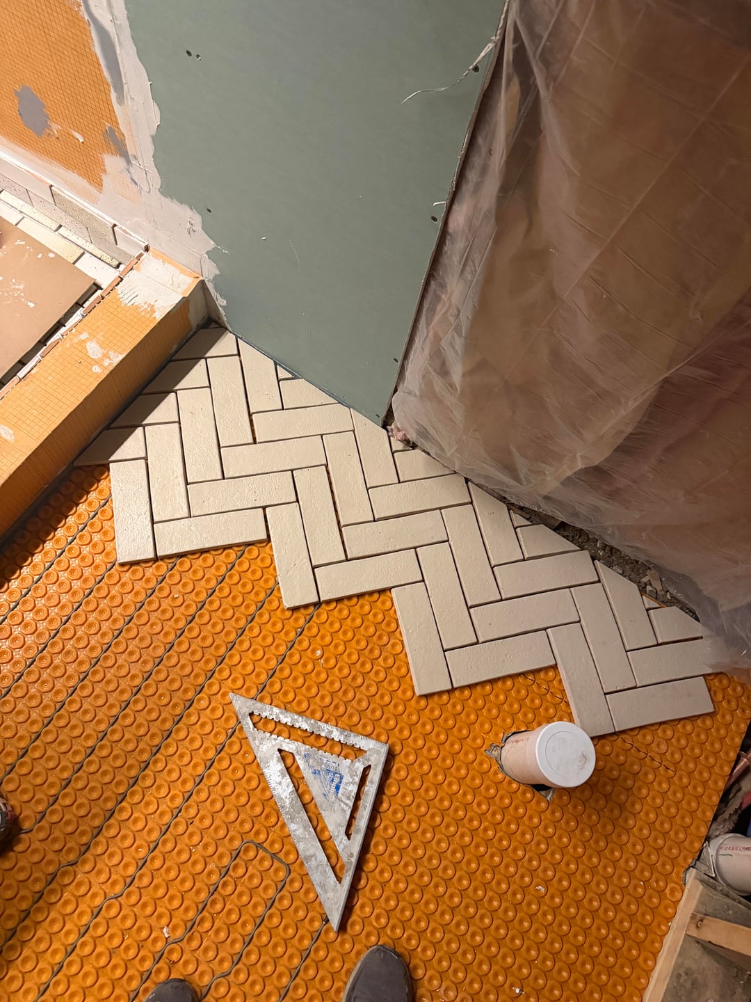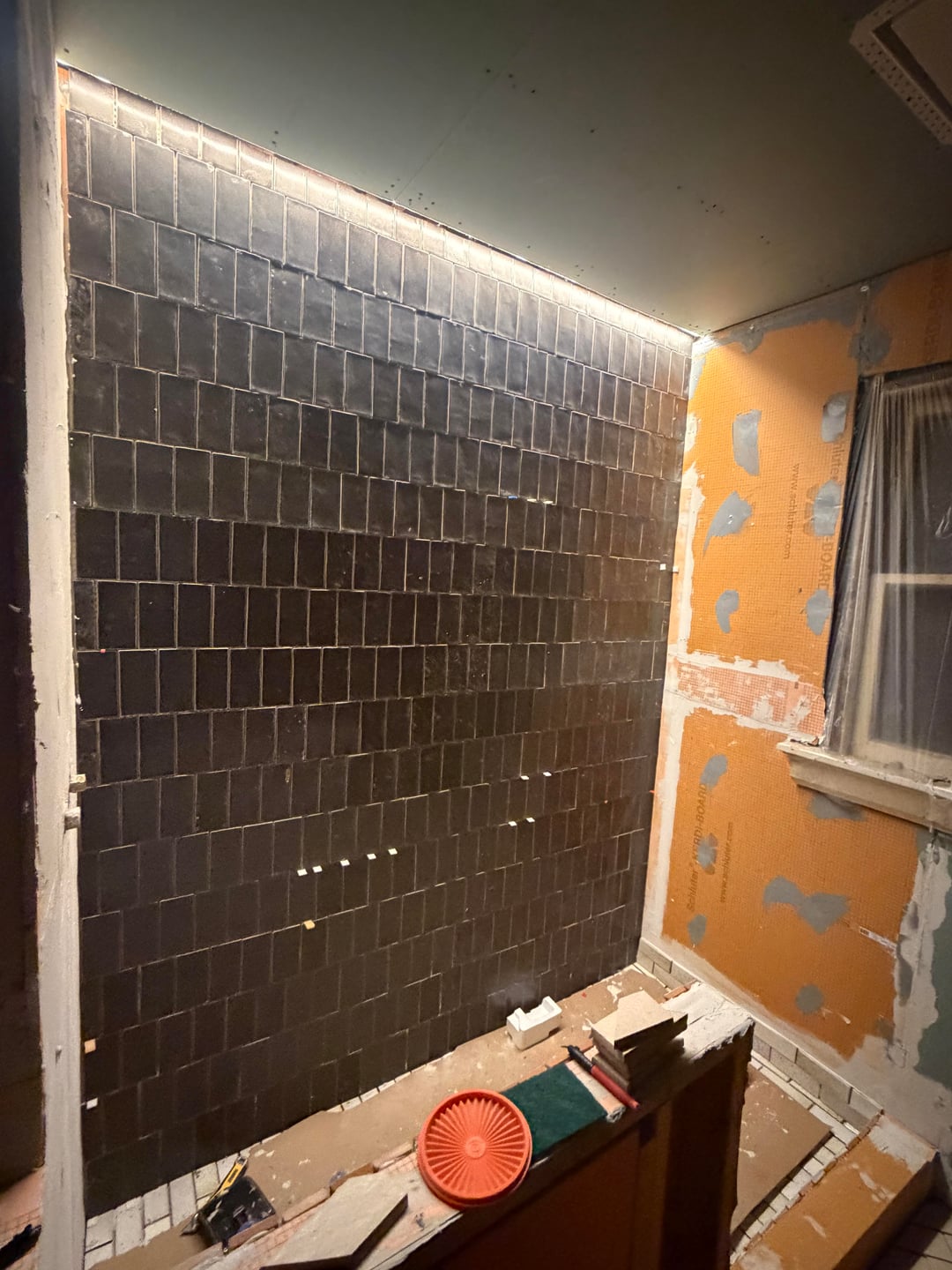 それで私は大失敗しました。中古のタイルを購入しましたが、面積の計算を完全に間違えました。インターネットや地元の業者を探しましたが、一致するものが見つかりませんでした。そのため、壁全体(窓の隣の壁)にタイルを貼ることができません。壁をどうするかアイデアを考え中です。レインシャワーヘッドから6.5フィート離れています。床タイルを壁まで約6インチ延長することにしましたが、それ以上は100%一致しない限り、その壁にはタイルを貼りたくないのです。アクセントウォールを検討しましたが、すでに 3 つのタイルを選択しています。壁に黒いタイル、シャワーの床に明るいタイル、そしてメインの床に別の明るいタイルを使いました。すべてのタイルは自然で質感のあるものです。テクスチャとタイルのバリエーションはすでに限界まで達しているような気がします。この最後の壁の解決策を探しています。理想的には乾式壁で仕上げたいのですが、それが防水とどのように機能するかわかりません。何かアイデアはありますか?