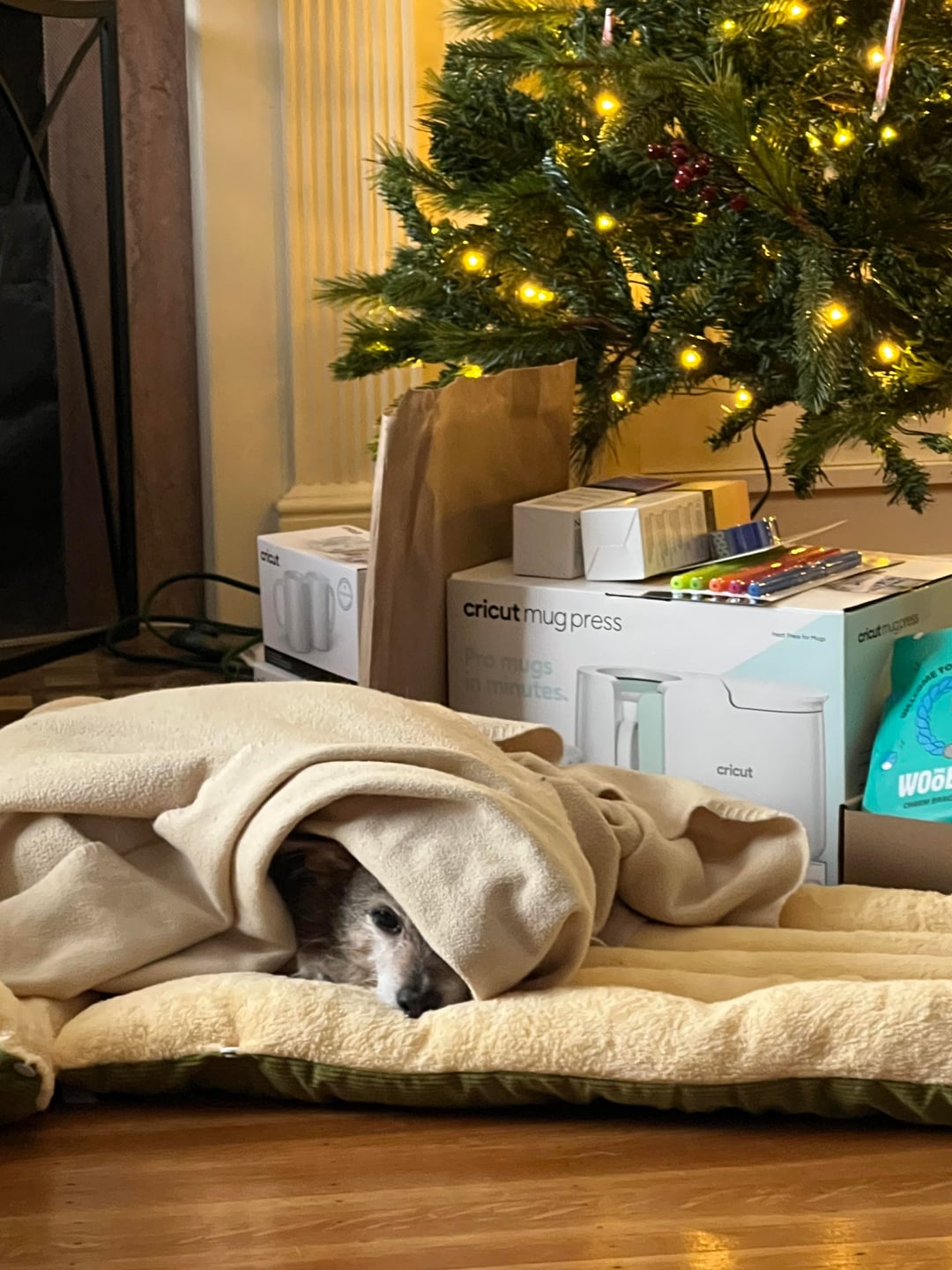 ソファから雪が降るのを眺める居心地の良いリビングルーム