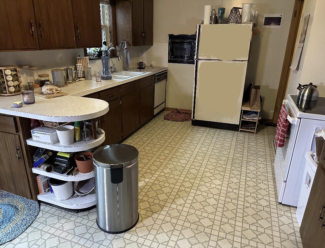 キャビネットをどうすればよいかアドバイスをいただければ幸いです。形はまあまあで、ところどころ少し傷はありますが、完全に機能しており、天然木の見た目が本当に気に入っています。ただし、カウンタートップを交換する予定で、左下のオープン棚は廃止したいと考えています。キャビネットを追加して、(何十年も前の)キャビネットと完全に一致するように汚すのは難しいと言われました。また、キャビネットの塗装は短期的な解決策にすぎず、数年後には見た目が悪くなるという記事も読んだことがあります。大手量販店から見積もりを取ったところ、手持ちのものを交換し、さらにオープン棚がある場所にキャビネットを追加すると、材料費だけで約11,000ドルかかると言われました。 (これらは「安価な」キャビネットです。) 洞察や創造的な解決策をいただければ幸いです。