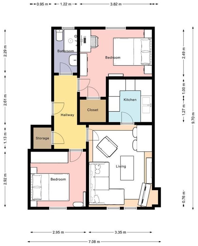 最後の写真のこの 2 階のアパート、元のレイアウトを見てください。キッチンが私には大きすぎて、少しスペースが無駄になっているような気がするので、ベッドルームが 2 つあるオプションに傾いているのですが、ご意見やその他の提案を聞きたいですか?