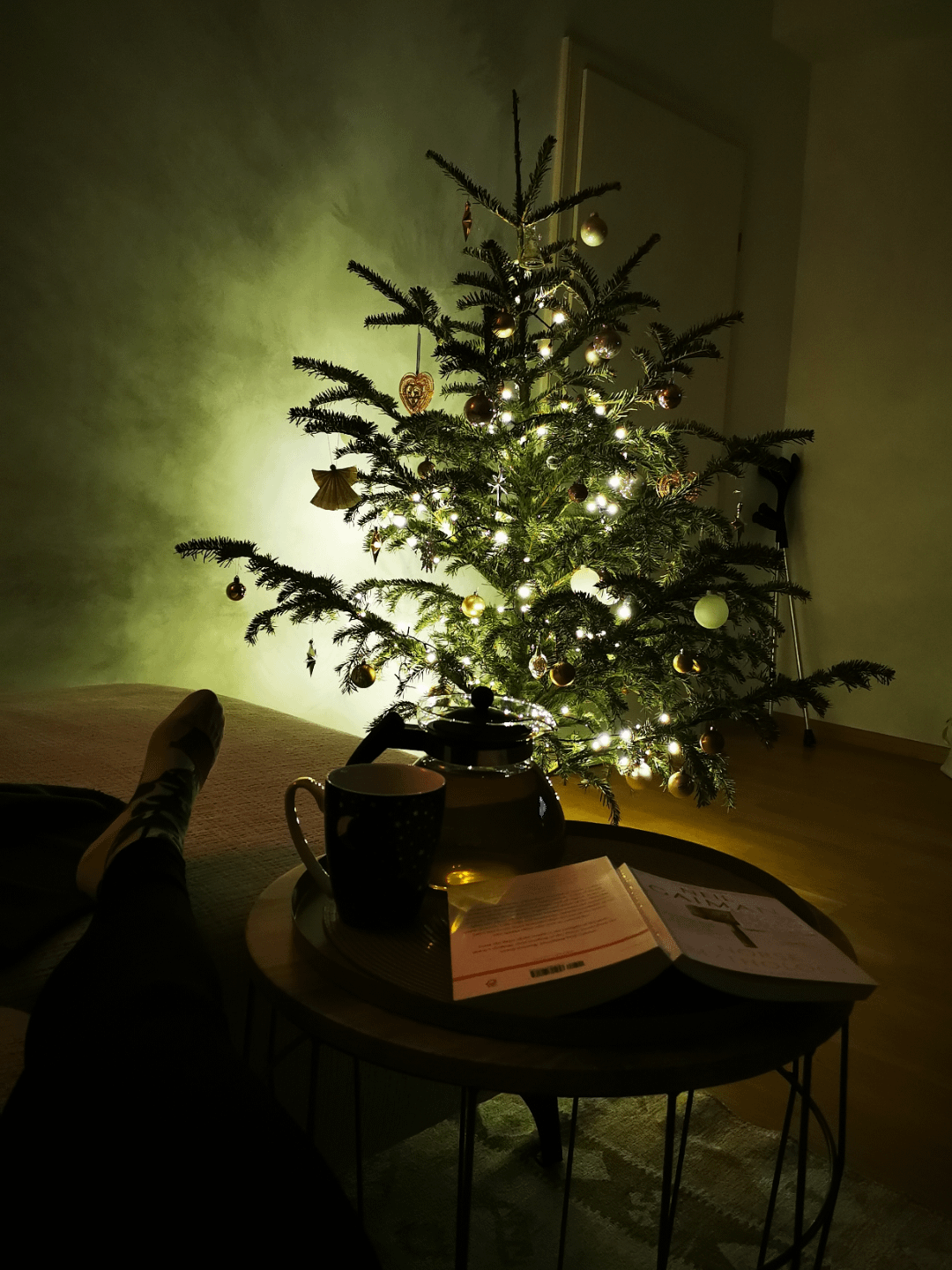 ソファから雪が降るのを眺める居心地の良いリビングルーム