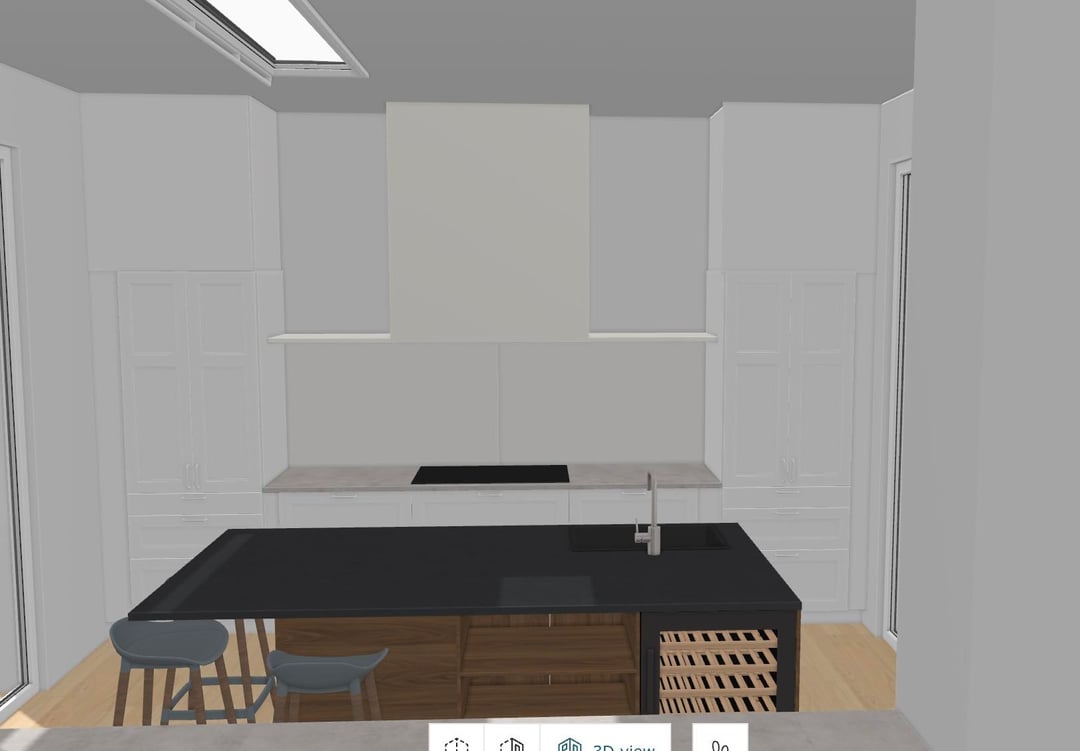 – シンクを島の隅に押し込みます