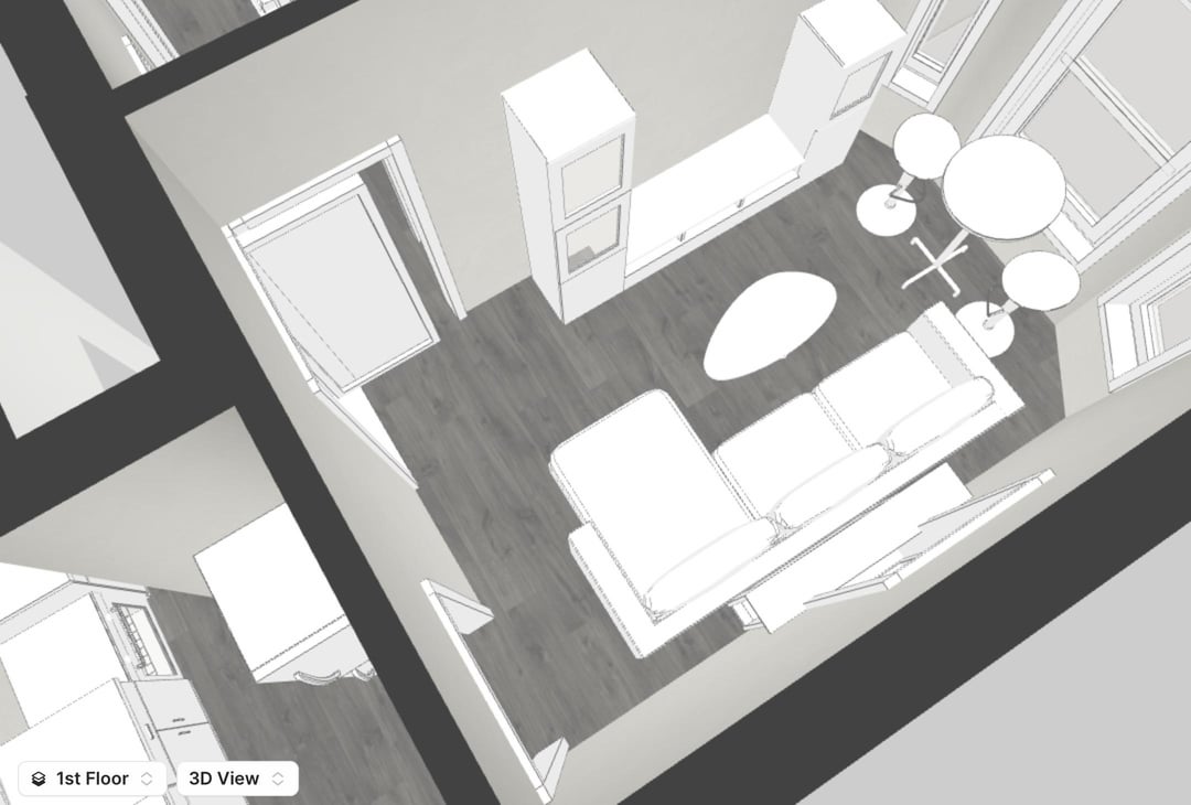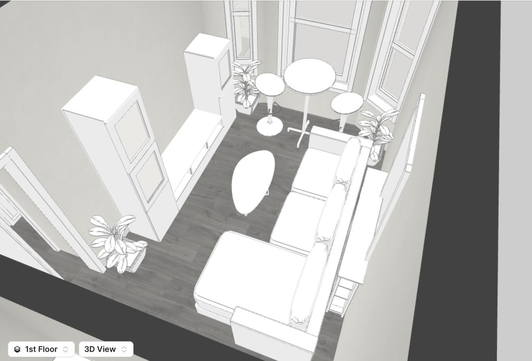 出窓をうまく機能的に使いたいですね。来客用に引き出して使える大きさのソファが欲しいです。ダイニング/デスクスペースに変わる機能的なコーヒーテーブルを検討しています。アパートの完全なレイアウトが提供されましたが、リビングルームについての考えに興味があります。寝室もかなり狭いので、寝室にクローゼットを持たないためのアイデアが欲しいです。