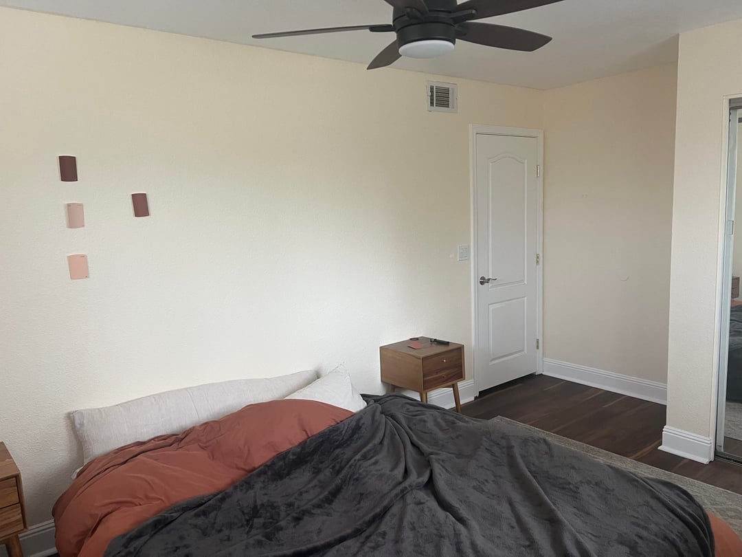 こんにちは!引っ越したばかりで新しい家具や敷物が欲しいので、今はめちゃくちゃです。しかし、私たちはこの通常の寝室を主寝室に変えます。私たちの「実際の」本拠地は第二の居住空間に変わりつつありますが(私たちにとって広すぎました)、私たちはまだそのウォークインクローゼットを衣類のために使用しており、この部屋で寝ているだけです。