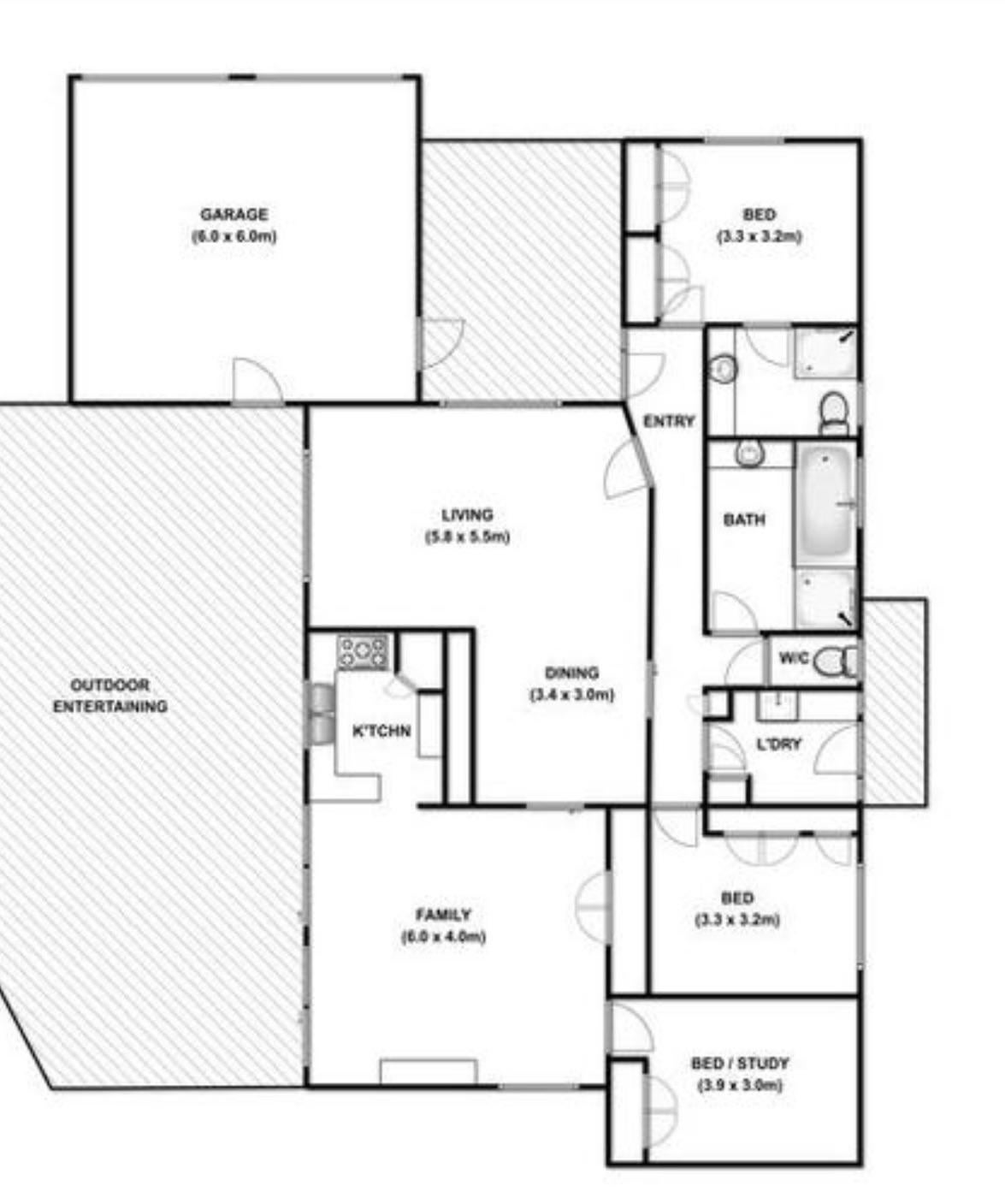 私たちが利用できるオプションは、後ろのベッド/書斎からファミリールームの全長に沿って最大4メートルの範囲に出ることです(私の希望ですが、妻はそれほど庭を失いたくないのです。)