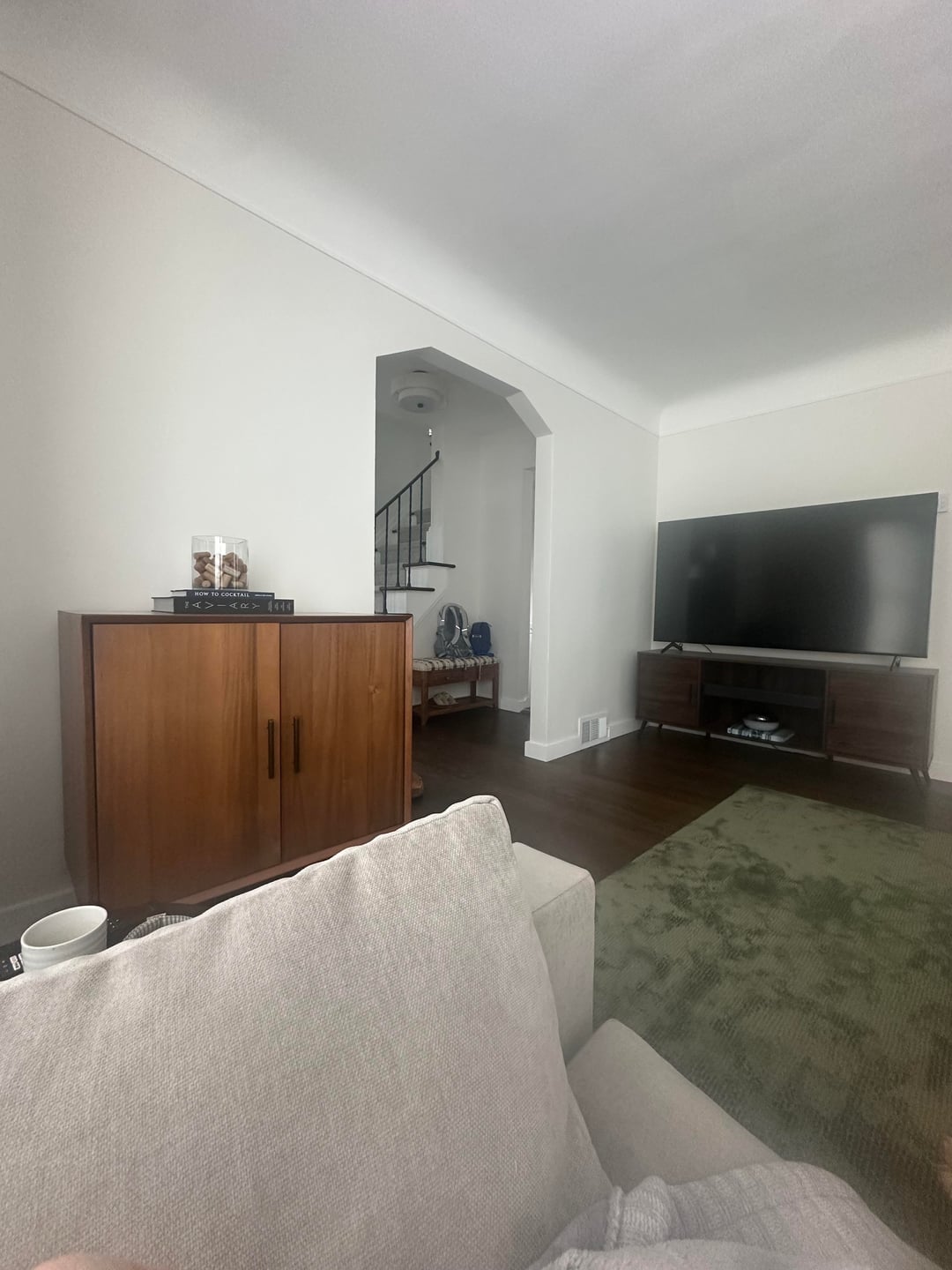 私たちは6か月前に家に引っ越してきて、初期セットアップに持っていたものを使用しました。 このリビングスペースのレイアウトが主要なスペースであり、メインフロアのテレビに最適なスペースであると知ったら、どのようにアプローチしますか? 私たちは暖炉の上にフレームスタイルのテレビを置き、出窓に小さなL字型の断面があり、暖炉に面したリビングルームまで伸びています。ただし、コードを取り付けたり、暖炉の上にテレビを設置したりするには、電気/乾式壁の工事が必要になります。 ありがとう!