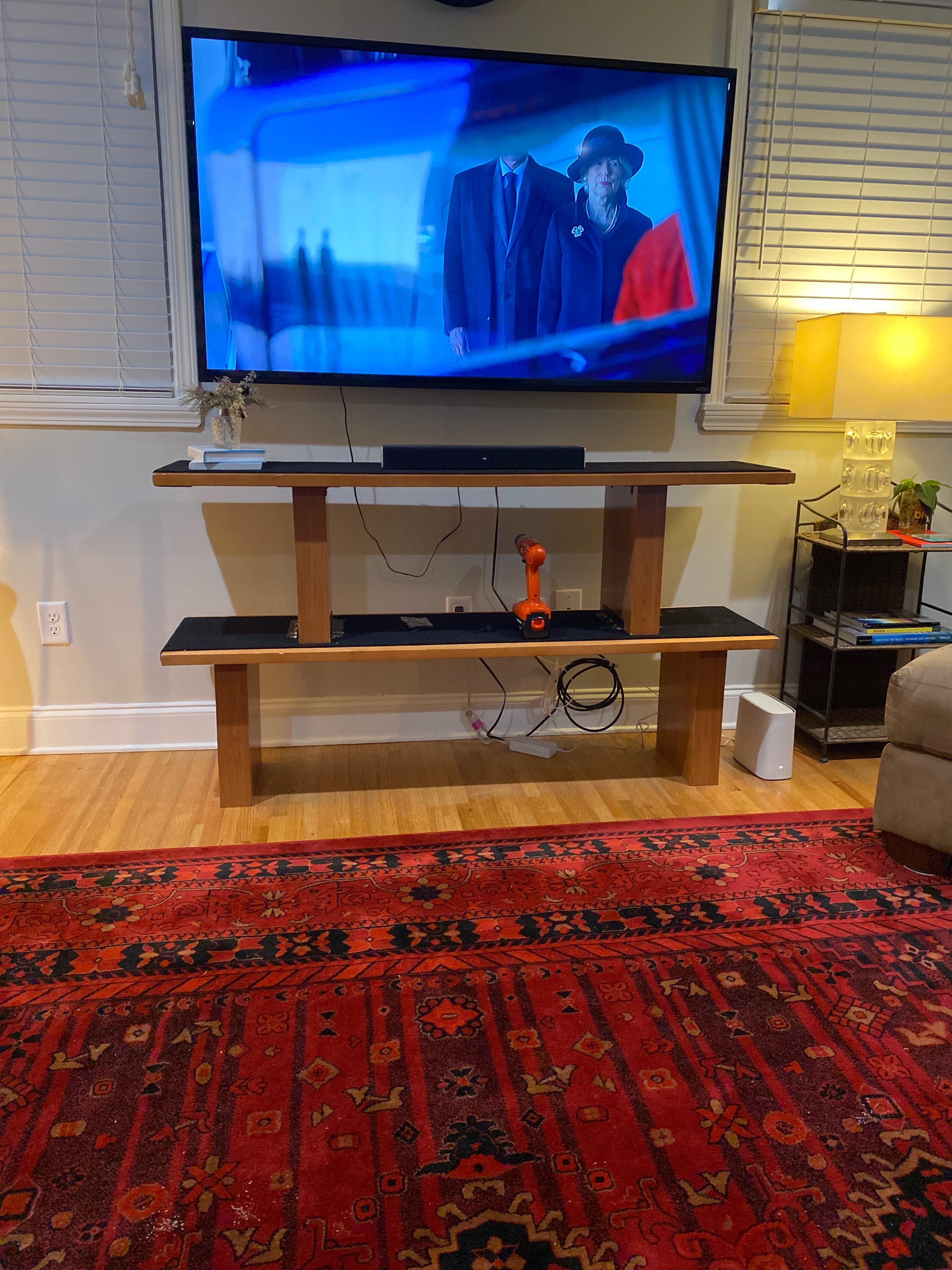 新しいテレビ台の下にコードを隠す方法についてのアイデアが必要です 基本的には、メイシーズの閉店セールで販売されたベンチを 2 つ重ねたものです。気に入るかどうかはまだ検討中ですが、コードを隠す方法についてアイデアをもらいたいと思っています。 あなたがうまく機能すると思われるスペースに関する他のアイデアを遠慮なく提供してください。 🤗