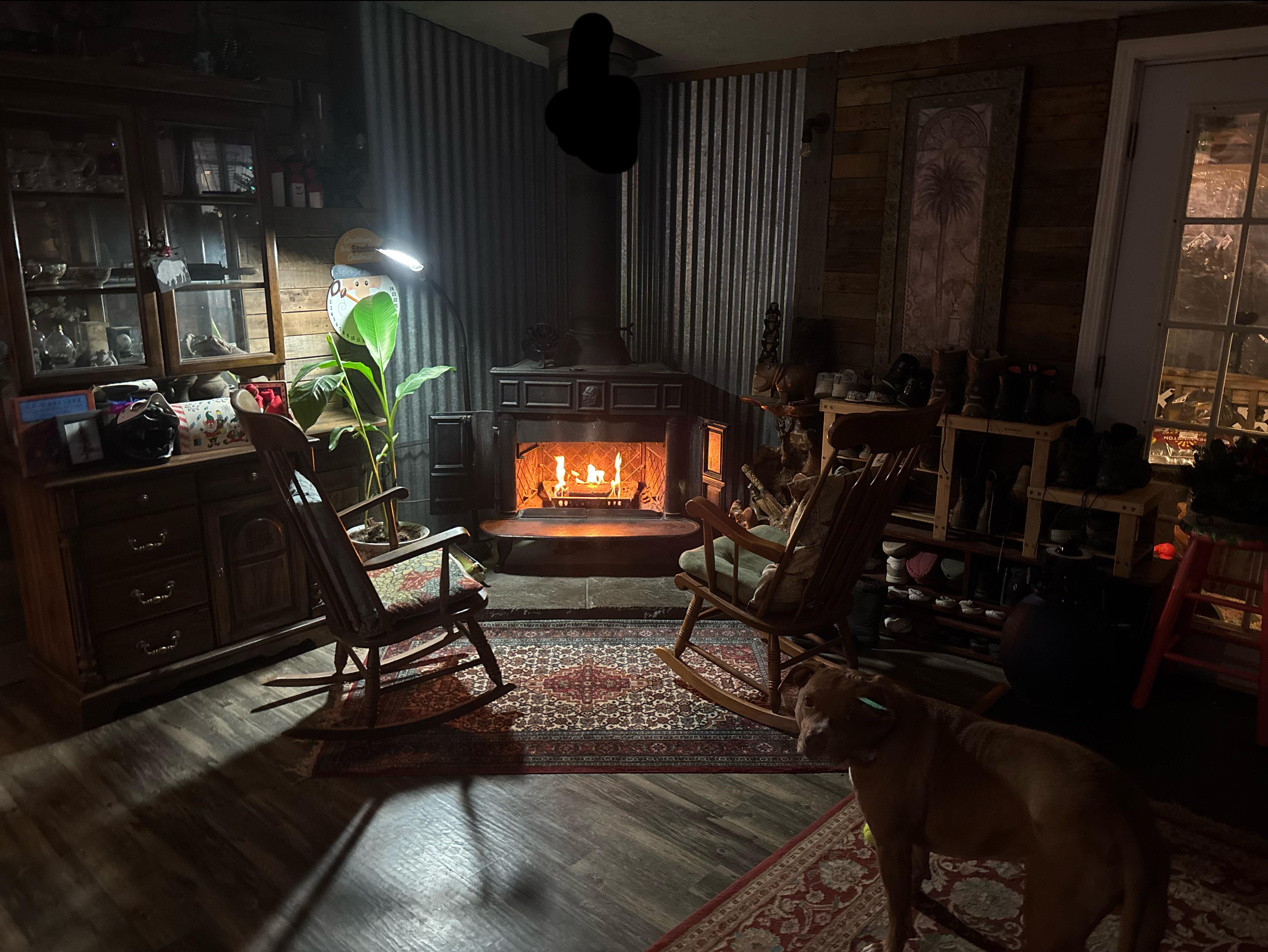我が家の小さなコーナー、フランクリンストーブ、バナナの苗を春に向けて準備中