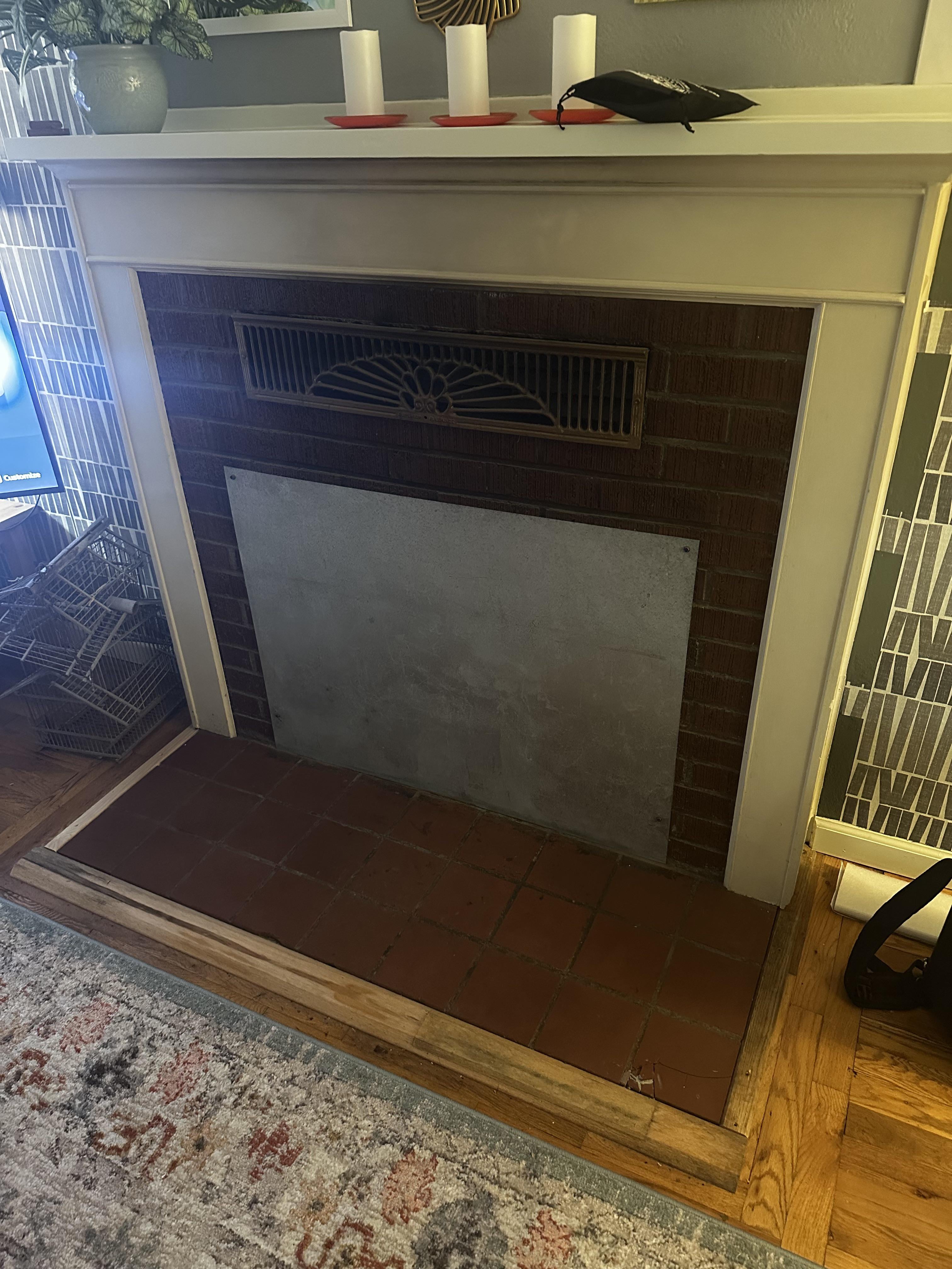 この暖炉に新しい命を吹き込む方法についてのアイデアを探しています。レンガを壊すのは大変な頭痛になるので、レンガはそのままにしておきたいのですが。しかし、私の意見では、ベースの赤いタイルは絶対に交換する必要があるので、トリム/色で何かをしたいと思っています。特注の炉棚を作ることも検討していました。