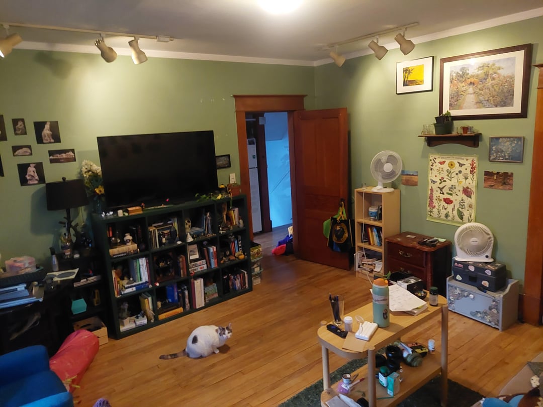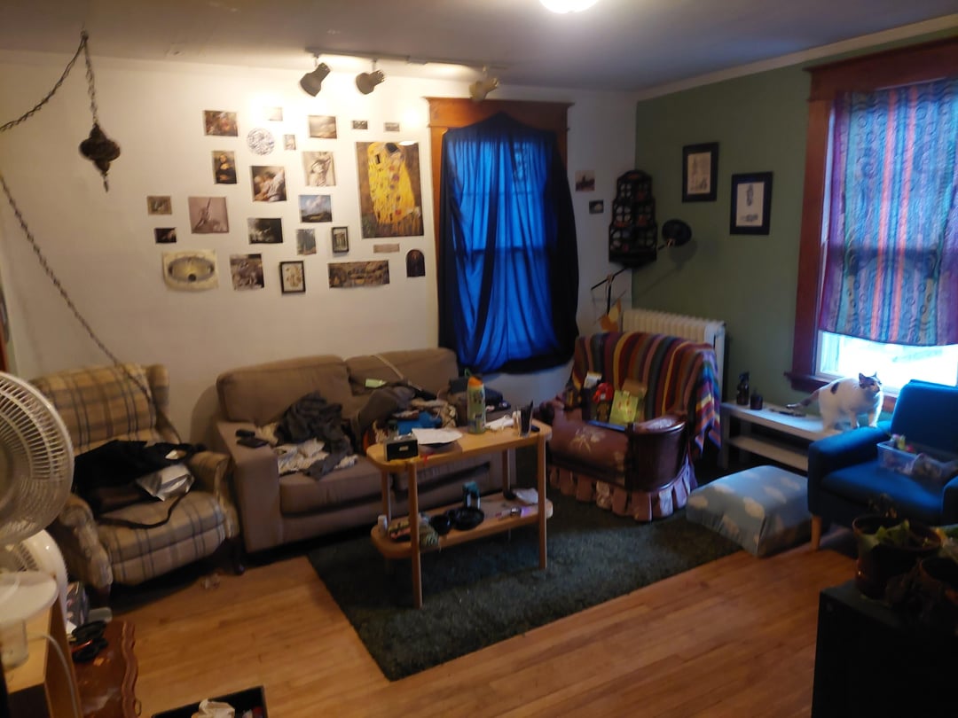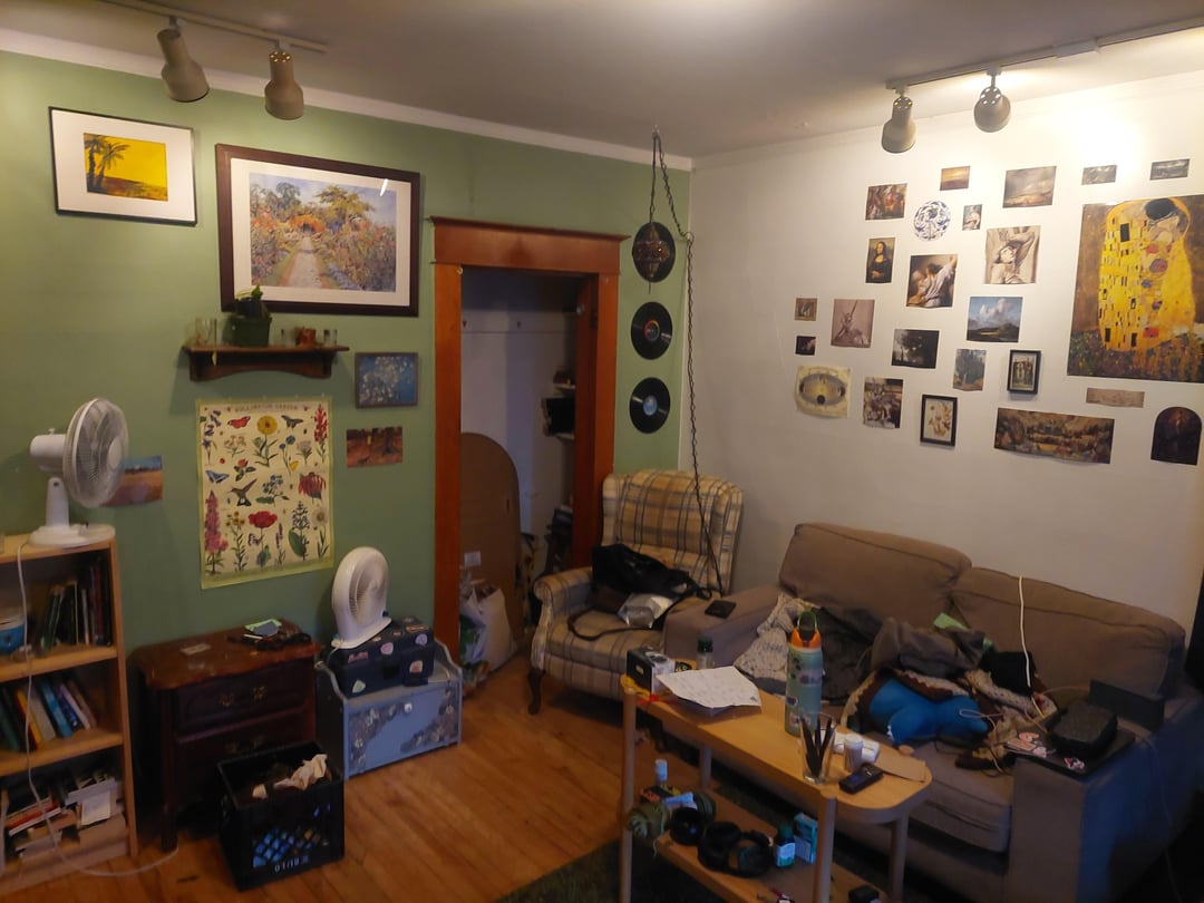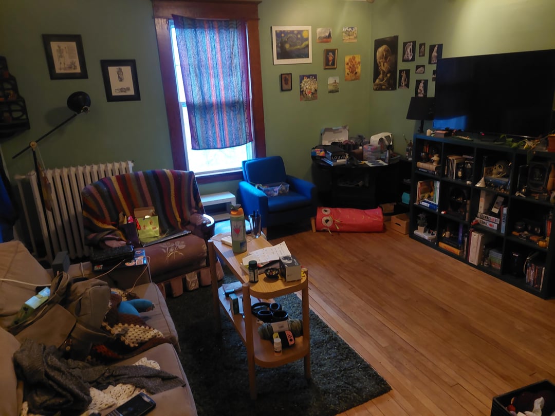 散らかっているところは無視してください。家具を移動する前に整理整頓中です。壁のアートを再整理/整理し、やり直す必要があることはわかっています。それも計画の一部ですが、まずは家具を整えたいと思っています。