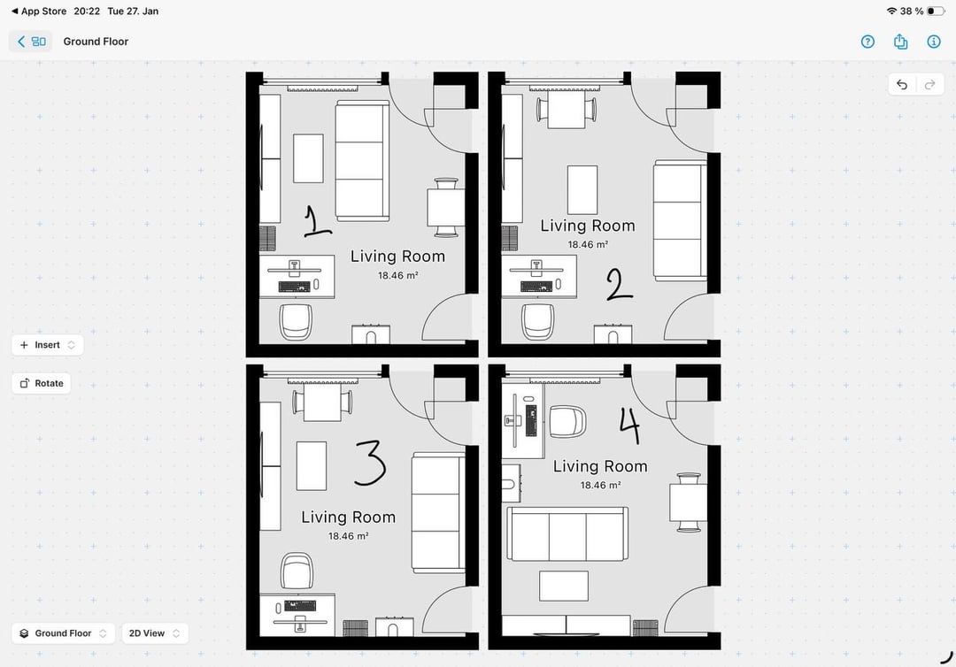 最近この新しいアパートに引っ越してきたのですが、家具の配置方法がまったくわかりません。実際の部屋の寸法と現在所有している家具を使用してアプリでいくつかのオプションを作成しましたが、1 つを選ぶことができません。入手した家具の最適なレイアウトや配置がよくわかりません。