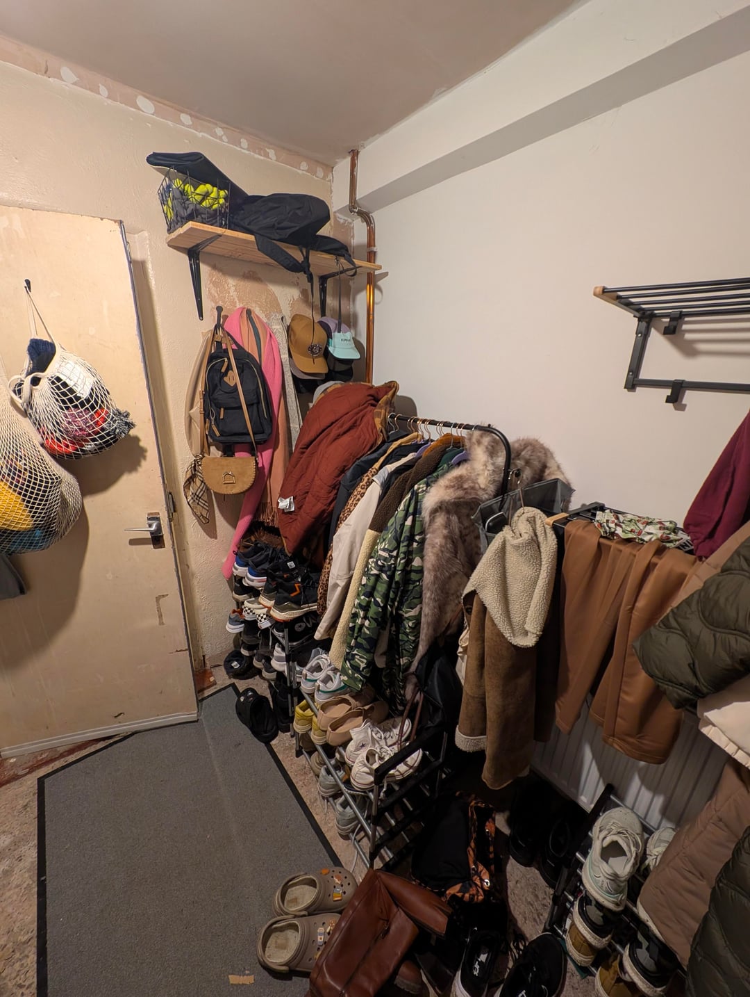 玄関の横に本当にひどい小さなコーナーがあり、現在は無駄なスペースとなっているのですが、そこをコート、靴、帽子などを収納するための適切で効率的な収納場所に変えようとしています。
