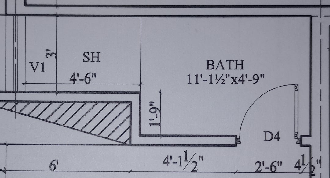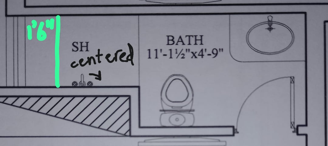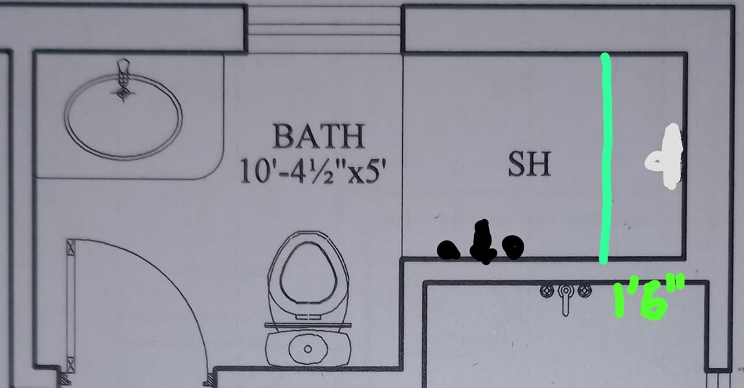 各浴室にシャワーシートを増設したい。 1番目と2番目のトイレで使えそうなものを描きました。シートの奥行きは1’6になります"。最後の 2 つのバスルームのシャワー シートをどこで調整すればよいのか、すべてのバスルームのレイアウトは大丈夫なのかわかりません。助けてください。 また、シャンプーなどのためにすべてのシャワーにニッチを追加する壁を提案してください。 事前にご協力いただきありがとうございました