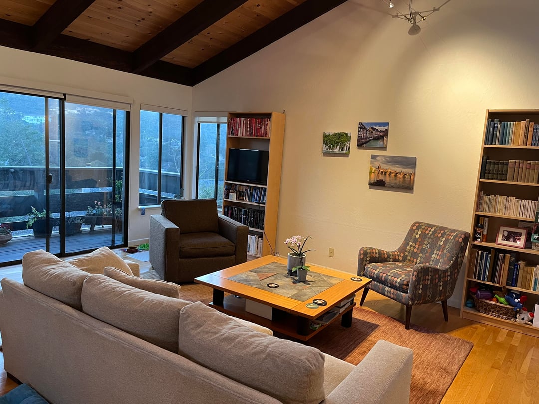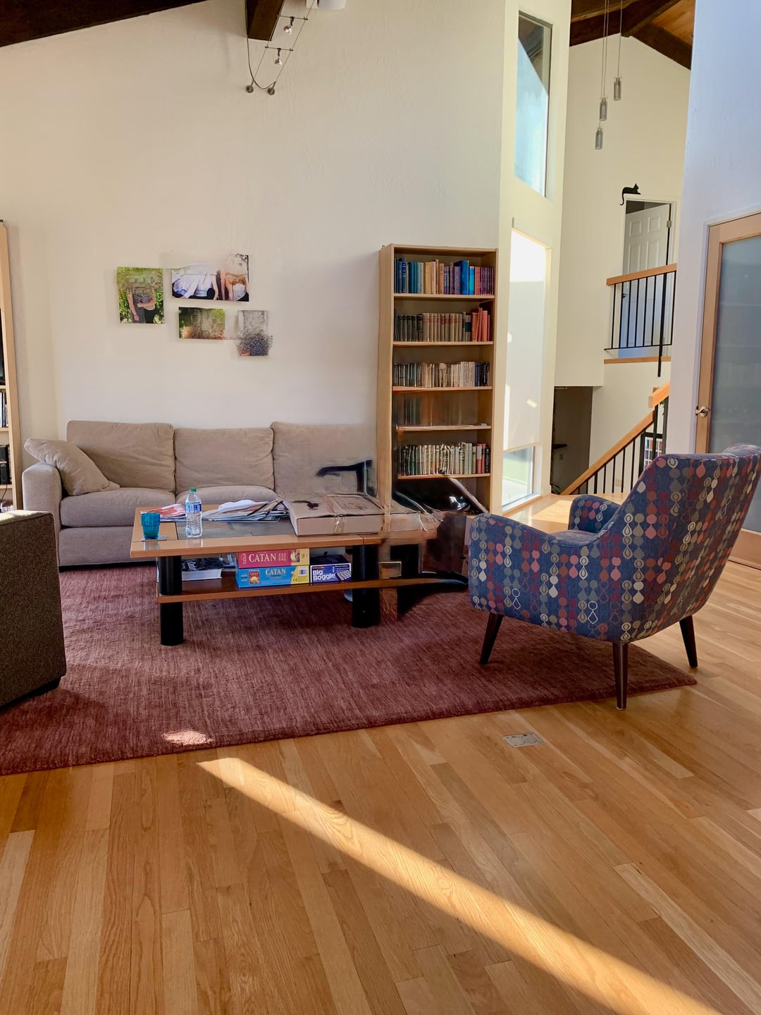 この部屋のセットアップ方法についてのフィードバックをお待ちしています。背景: 何年もの間、ソファは本棚の間にある壁に寄り、部屋の残りの部分に面して、広い部屋をできるだけオープンに保っていました。 (最初の写真)。