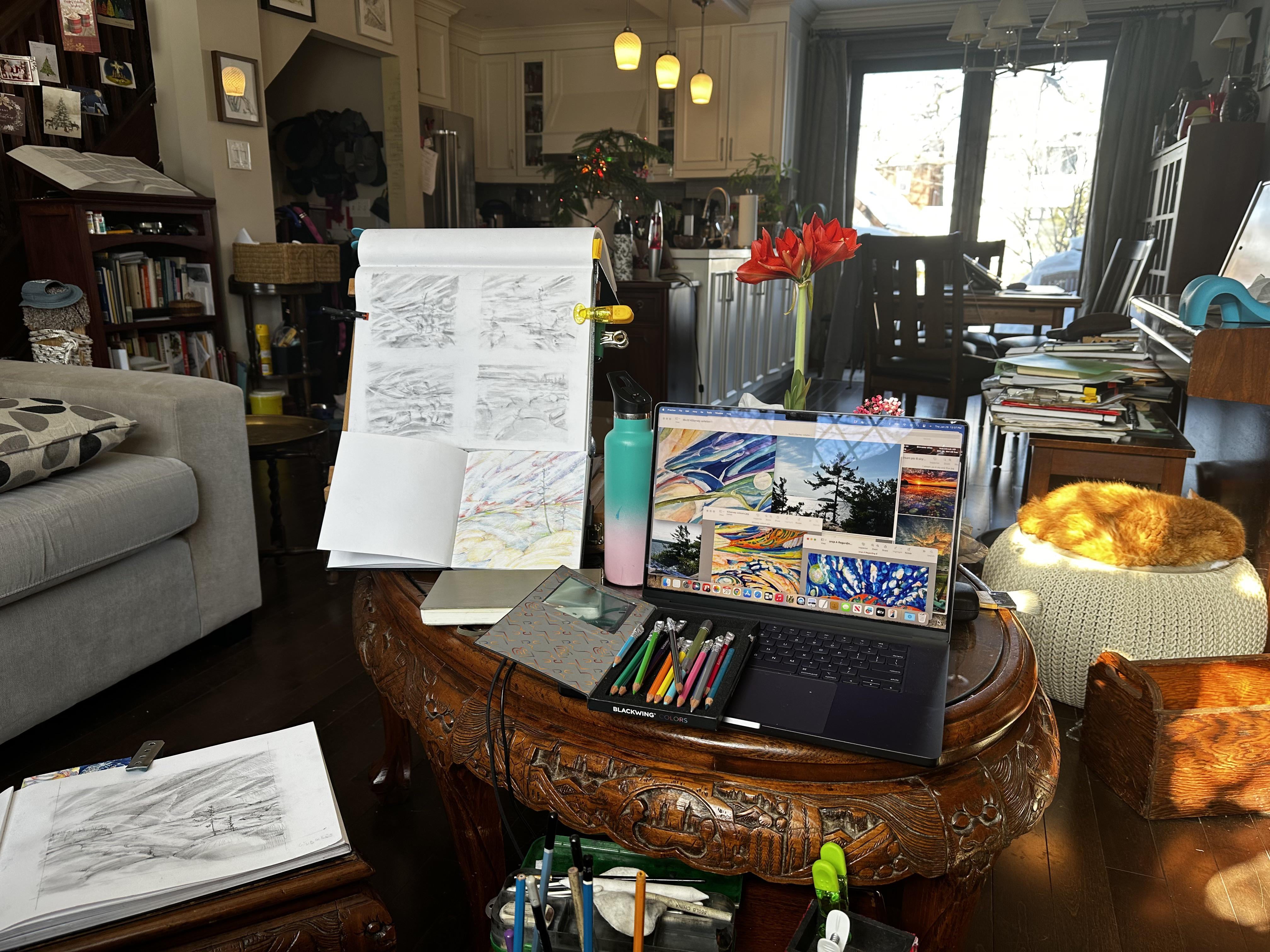 この寒い日は、おまけの猫と一緒にソファで仕事をしています。