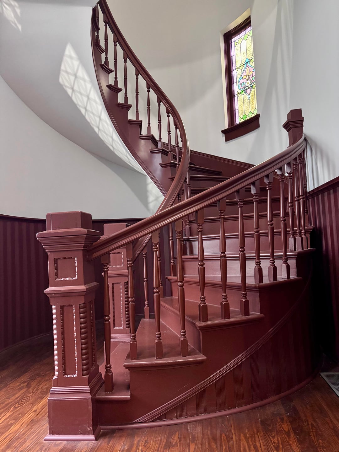 地元の図書館でステンドグラスの下で読書