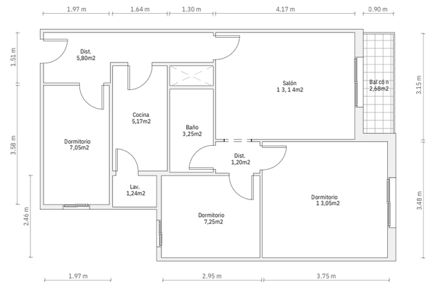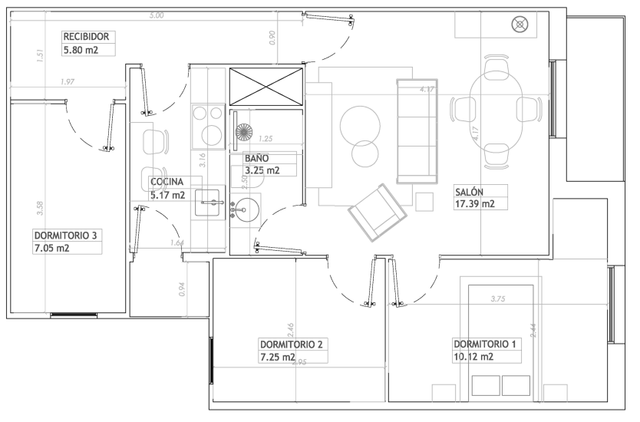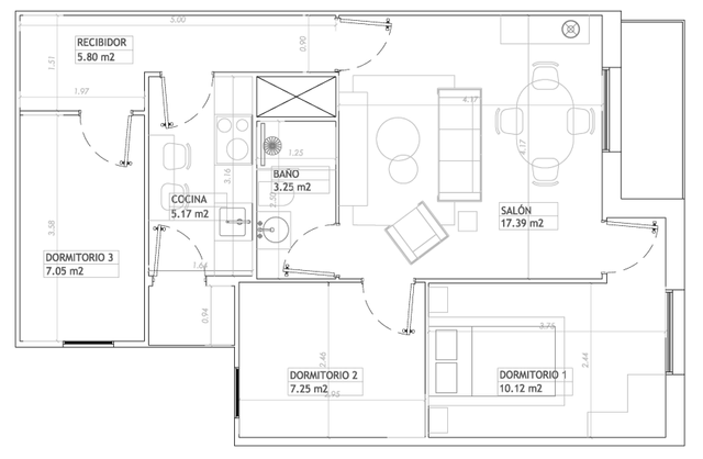 • 動線と家具のレイアウトを改善するには、寝室 1 (ドミトリオ 1) へのドアをどこに配置しますか?