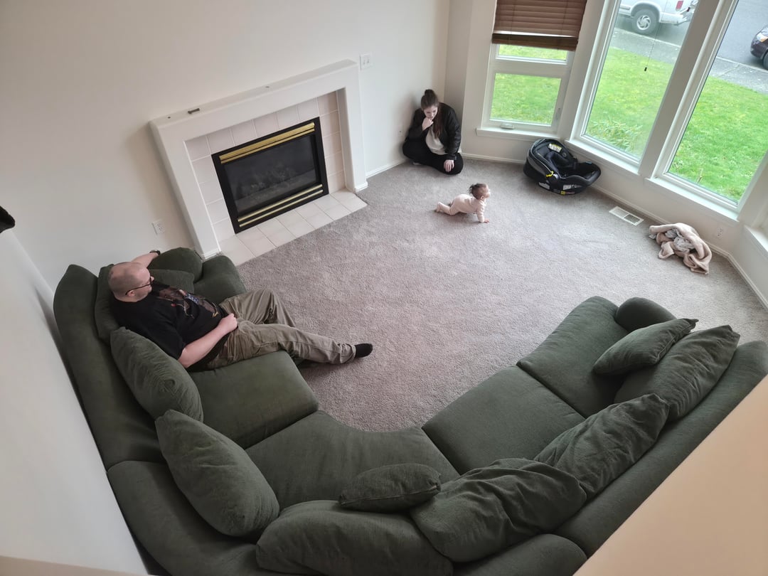 私たちは購入したばかりの三階建ての家を持っています。ソファは当初考えていたより少し大きいです。私はソファが大好きなので、それをうまく機能させたいと思っています。天井はとても高いです。暖炉の上でテレビを見ていることを考えています(ああ、わかっています)ソファで窓を塞ぎたくないのです。私が持っているパプソーンを女の子のいる隅(とりあえずその辺)に置こうかと考えています。ソファを中央に移動して、ラグとコーヒーテーブルを置いて会話の場にするべきでしょうか?とにかくソファの後ろの壁にアートを考えています。考え??高さがあるので、テレビのそばの壁をペイントするかどうかわかりません。おそらく男性が座っている後ろの壁かもしれませんが、わかりません。 🙃