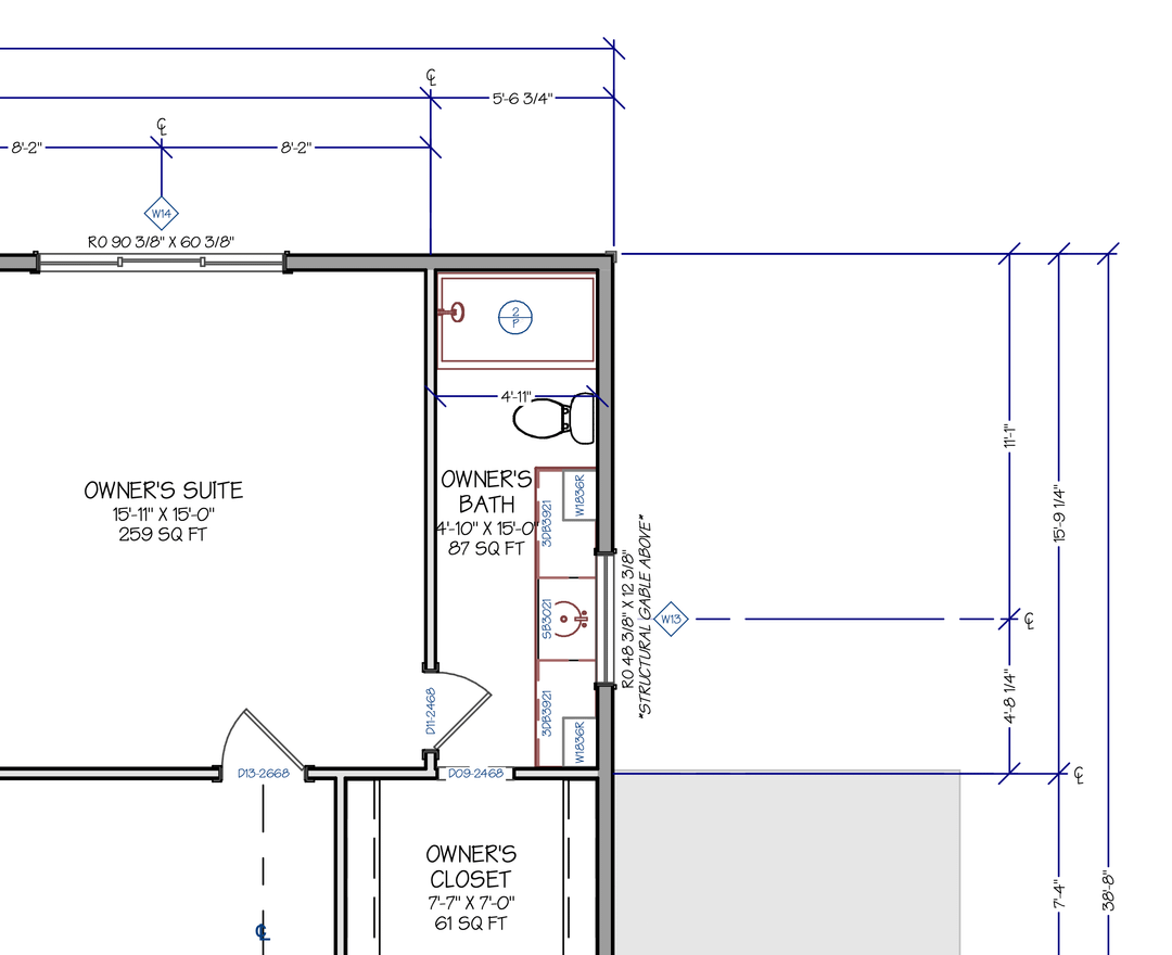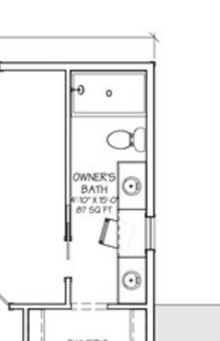 私は対称性が好きなので、シンクを片側に寄せたくないのです。洗面化粧台の長さを短くし、代わりにシャワーを拡張するか、それに沿った何かをするという点で、多少の余裕はあるかもしれません。