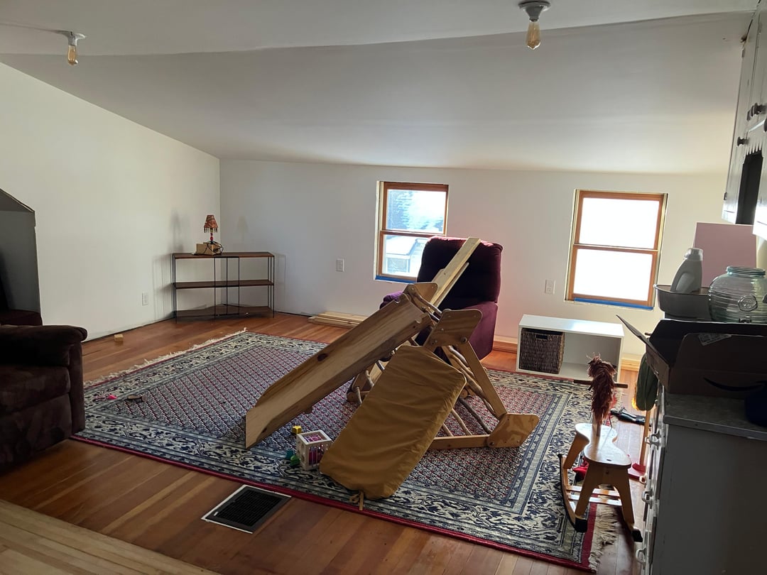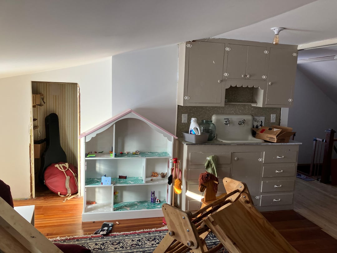 私たちは1800平方フィートのバンガローの2階をほとんど使っていません。1階で添い寝し、子供たちが大きくなったときのためにそこに追加の部屋があるからです。計画では、ベッドルーム 2 室とバスルームが 1 つあるこの 2 階を賃貸として使用する予定です。もともと、メインキッチンを共有する予定でしたが、現在、テナントが必要なときに自主性を持たせるために、この 2 階の共有ルームのシンクを拡張することを検討しています。追加情報: 我が家にはテレビがありません。2 つの二重吊り窓の間にミニスプリットを設置する予定です。また、この家具はすべて置くことができますが、ほとんどの場合、これは現在私たちのものを置くための単なるオーバーフロースペースです。