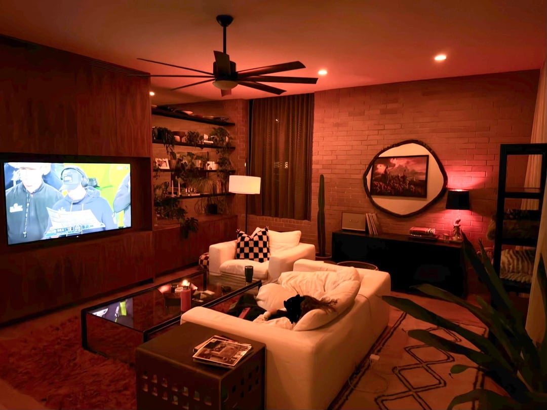 寝室 + ワークスペースにおけるサイドサラウンドスピーカーの建築的配置 (実際の部屋、画像添付)