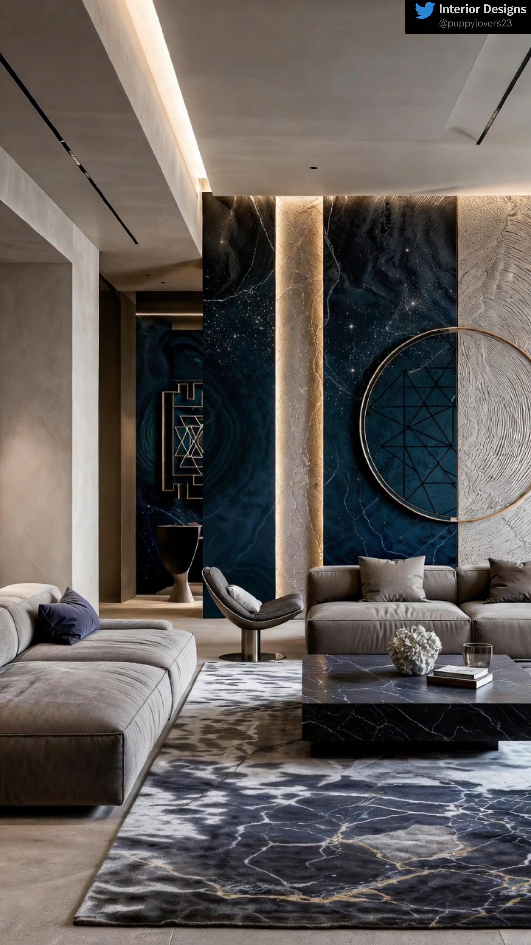 宇宙大理石の壁を備えたモダンで豪華なリビング ルーム [1152×576]