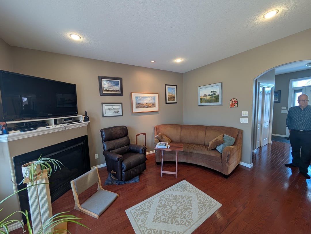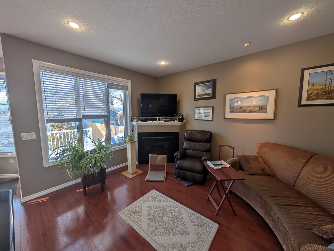 私はこのスペースを、第一に会話に、第二にテレビ(暖炉の上ではなく)に集中できる場所を探しています。このスペースに家具をどのように配置して配置するかで困っています。キッチンとダイネット/バックデッキの間の通路が狭くて扱いにくいです。私が想像できる方法で、アパートの小さなユニットソファや 2 台のソファを置くには小さすぎるように感じます。
