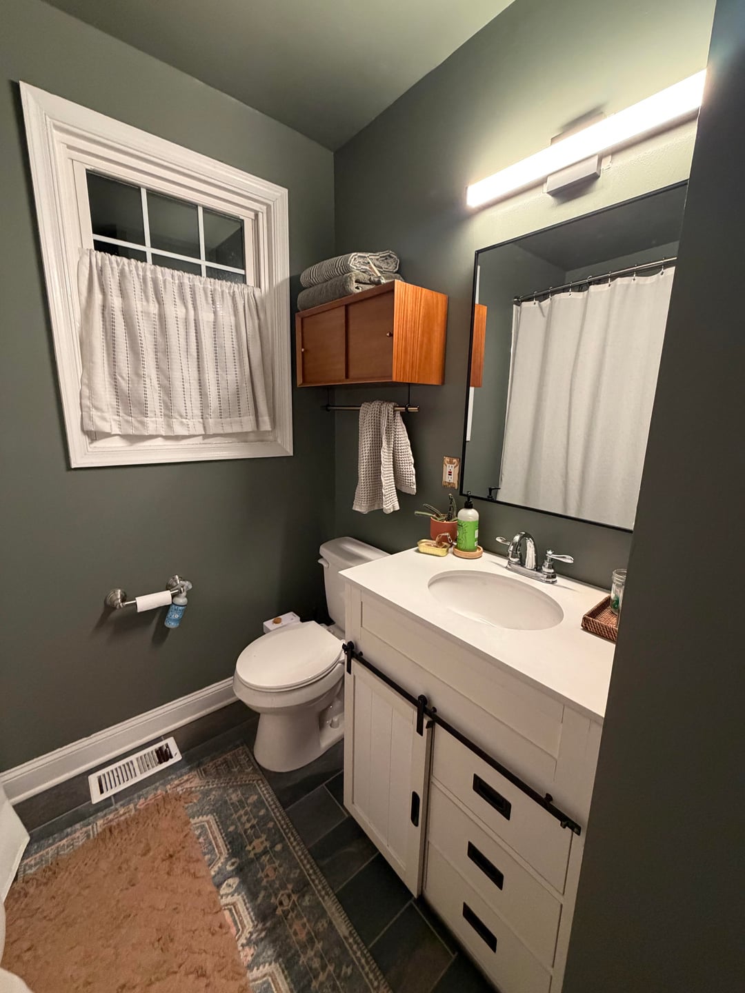 キャビネットの色を壁に合わせようと思ったのですが、白のままにするのは嫌ですが、やりすぎだと感じています。皆さんはどう思いますか?